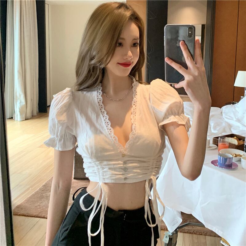 スタンダードレースVネックスリーブシャツ レトロ Xiaofeijia13642333004