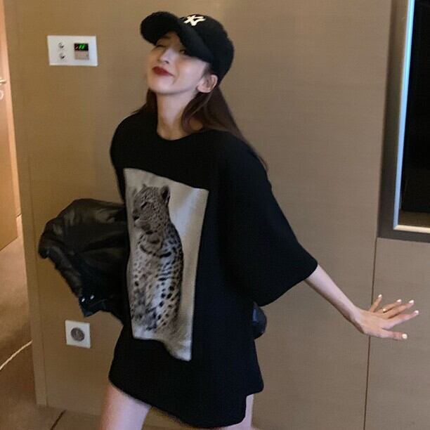 Tシャツ シャツ サマースタイルプリントパターンルーズラウンドネックトップス 夏物 Oネック Xiaofeijia82774165610