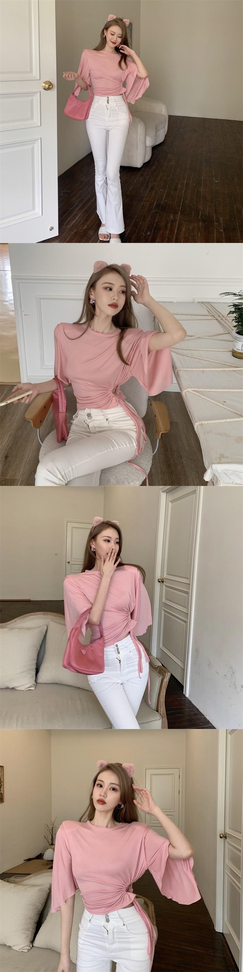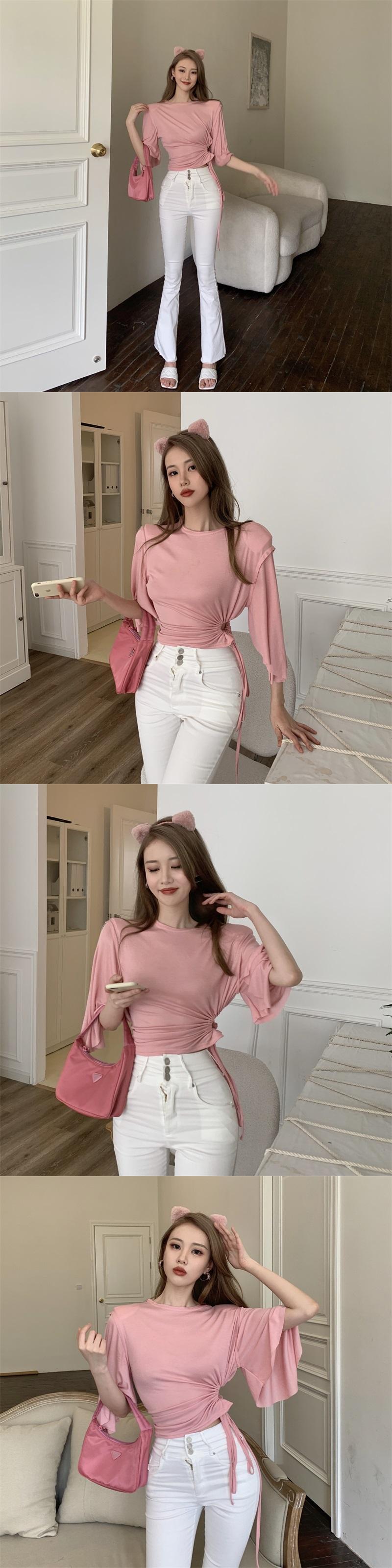 ギャザーウェストシャツ 薄手トップス Xiaofeijia20495486108