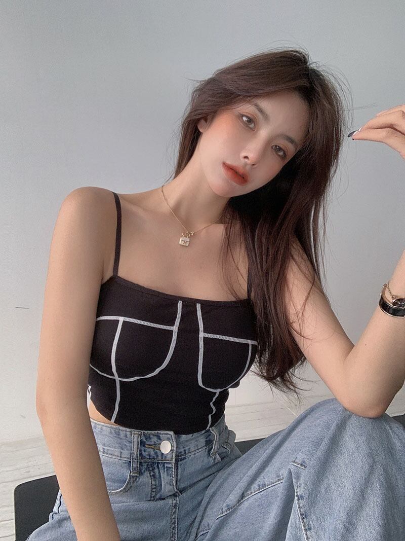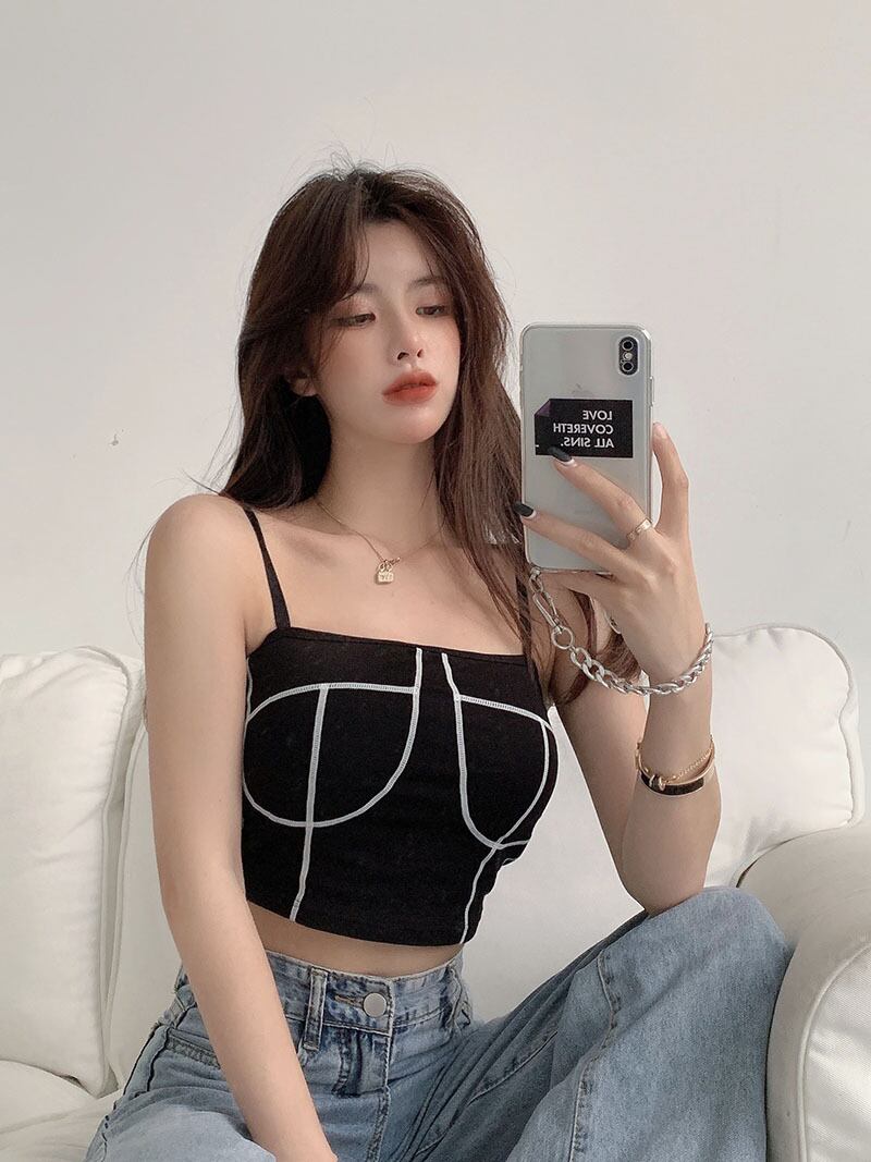 サマークロップドトップス カラーバックスリムシャツ 夏物 Xiaofeijia42745718390