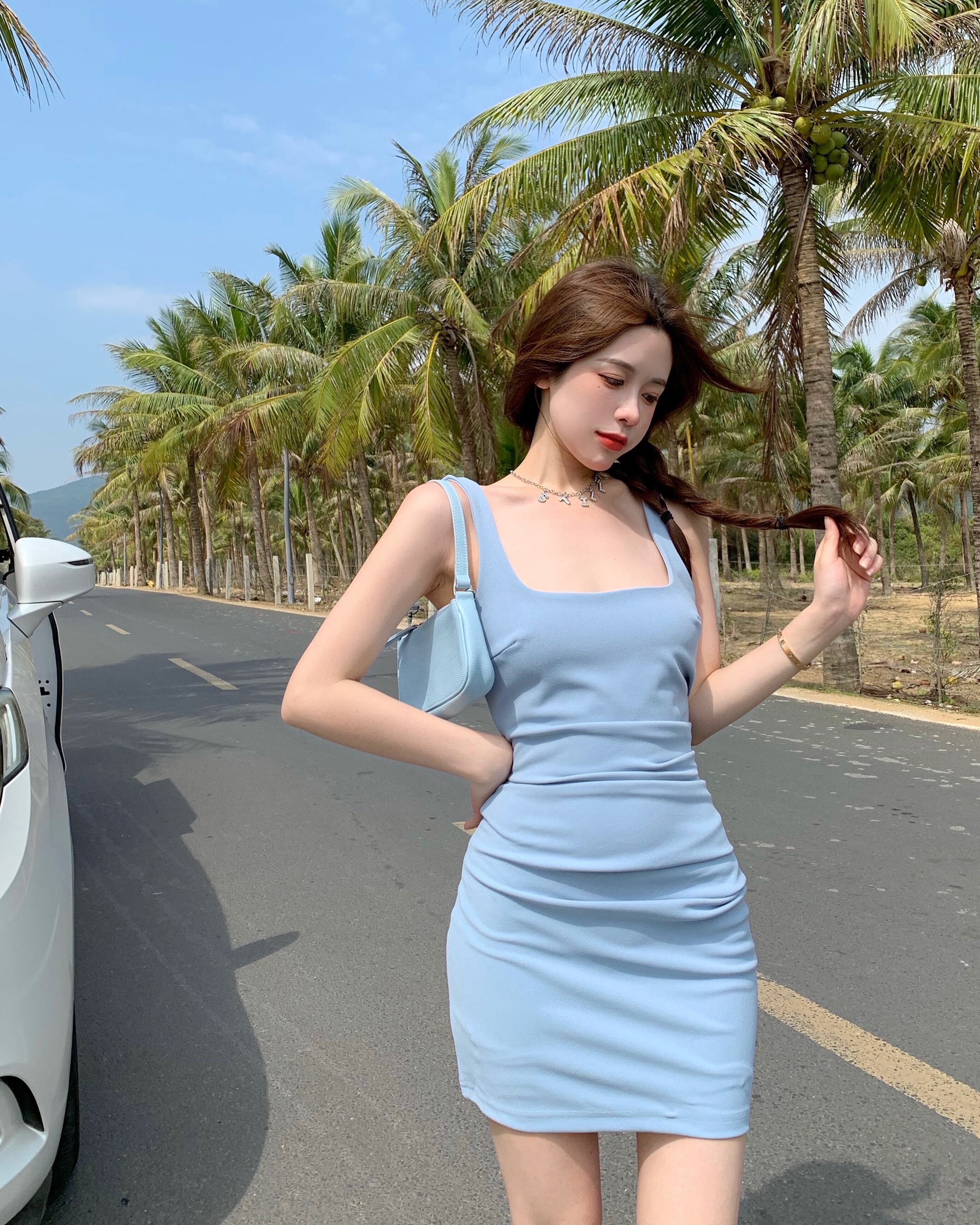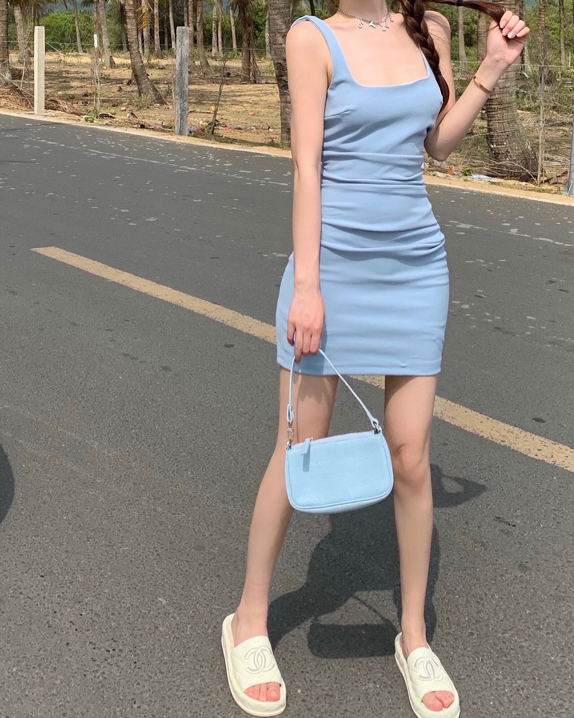 サマーホワイト薄手ドレス Aラインスカート 夏物 Xiaofeijia98687231616