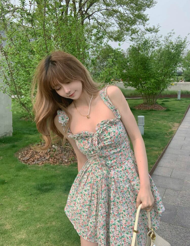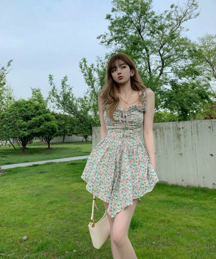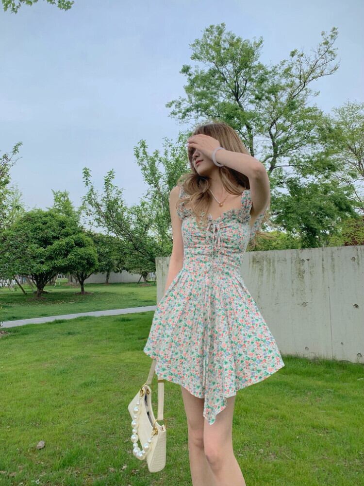 フローラルプリーツレースドレス 花柄 Xiaofeijia58228327298