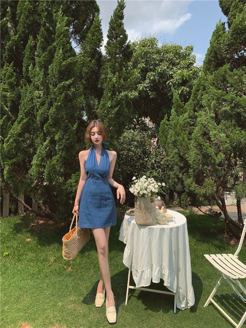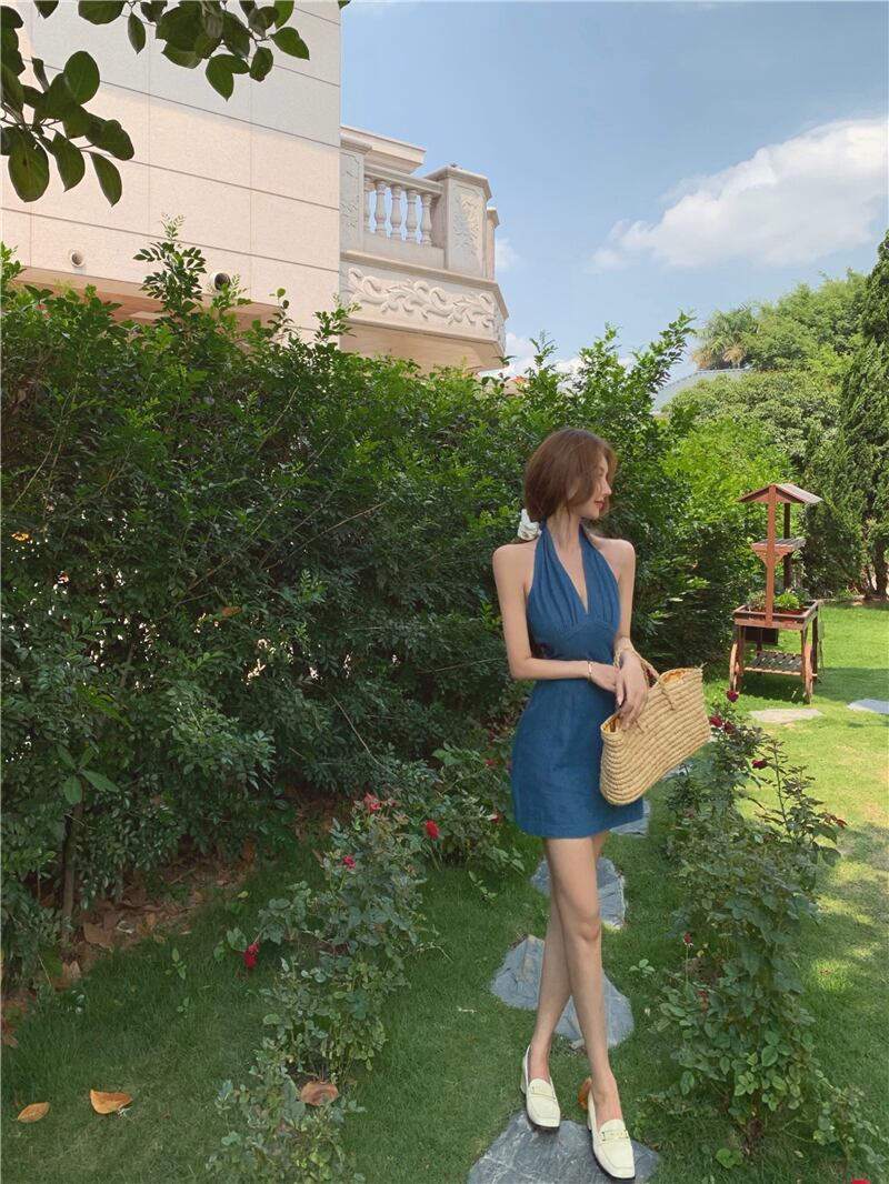 スタンダードホルターVネックドレス レトロ Xiaofeijia95965312378