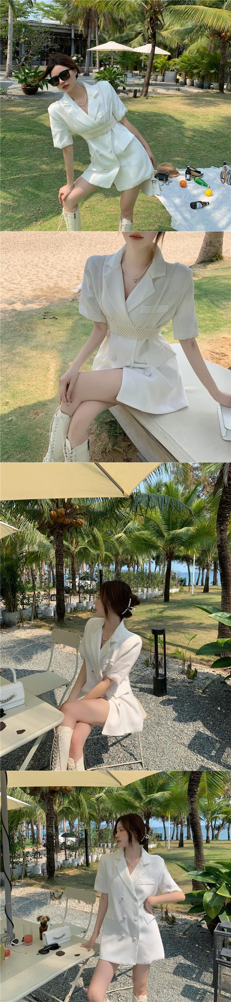 ジャケット サマーダブルブレストルーズスカート パール 夏物 真珠 Xiaofeijia57382645038