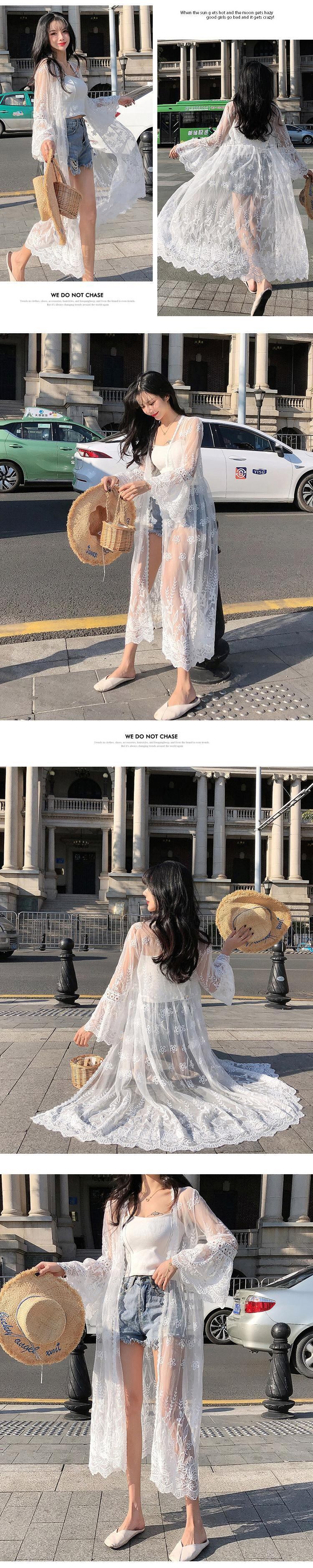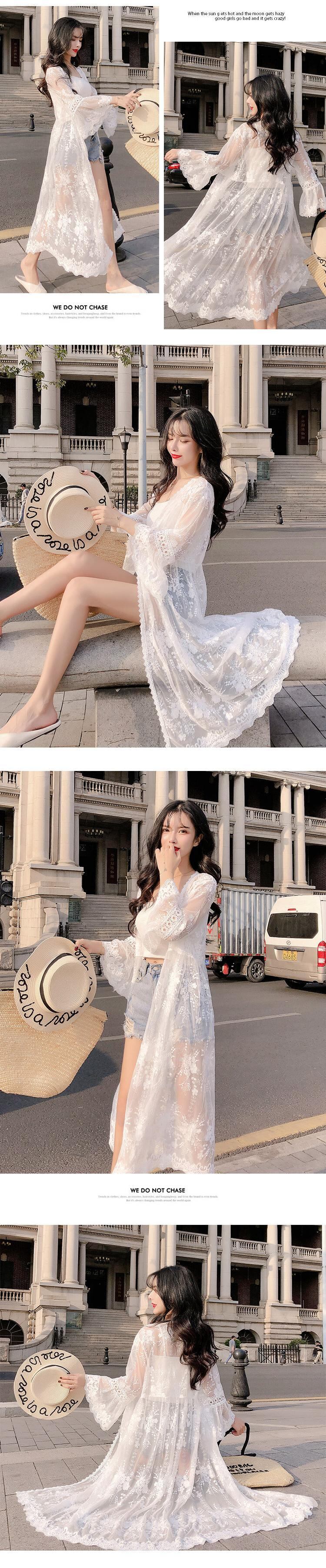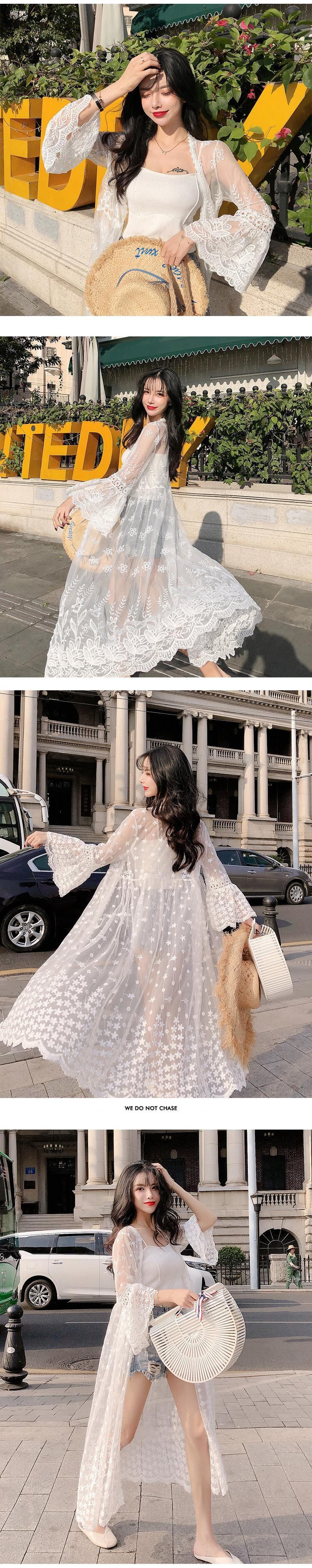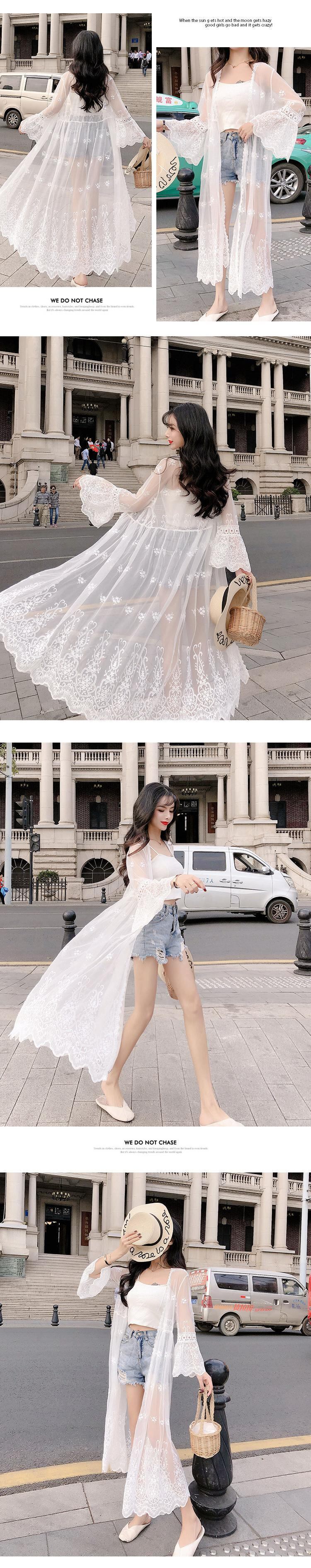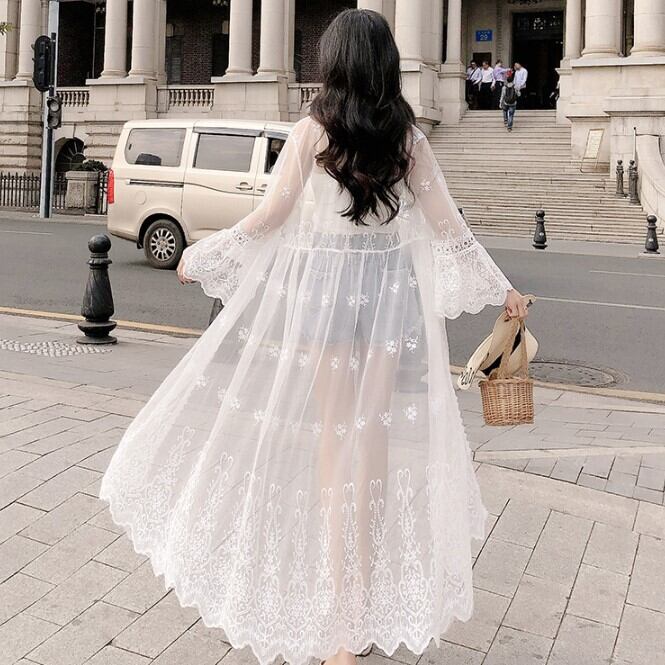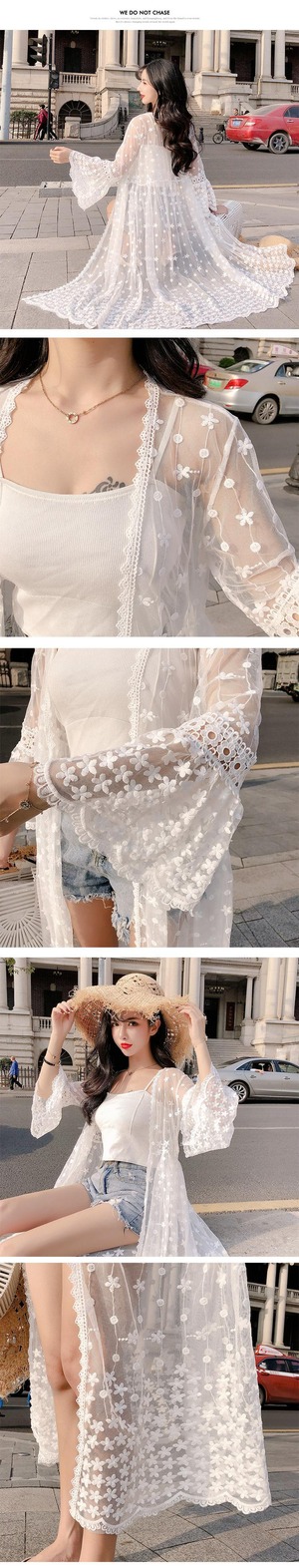 ルーズ薄手レースシャツ カーディガンスプリングサマートップス ロング 春物 夏物 ステッチ Xiaofeijia9658148470