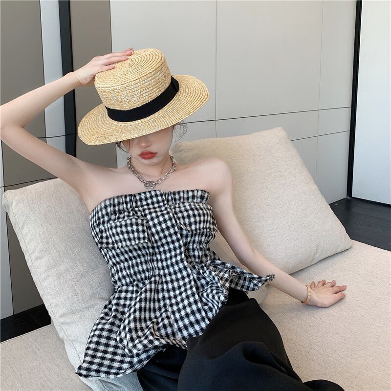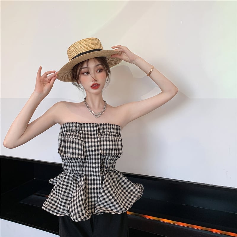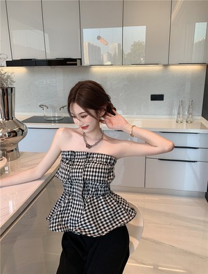格子柄ウェストトップス 大人ガーリー スウィート キュート カジュアル Xiaofeijia67121549136