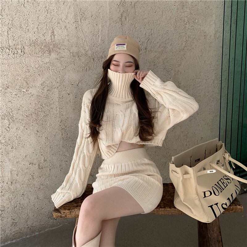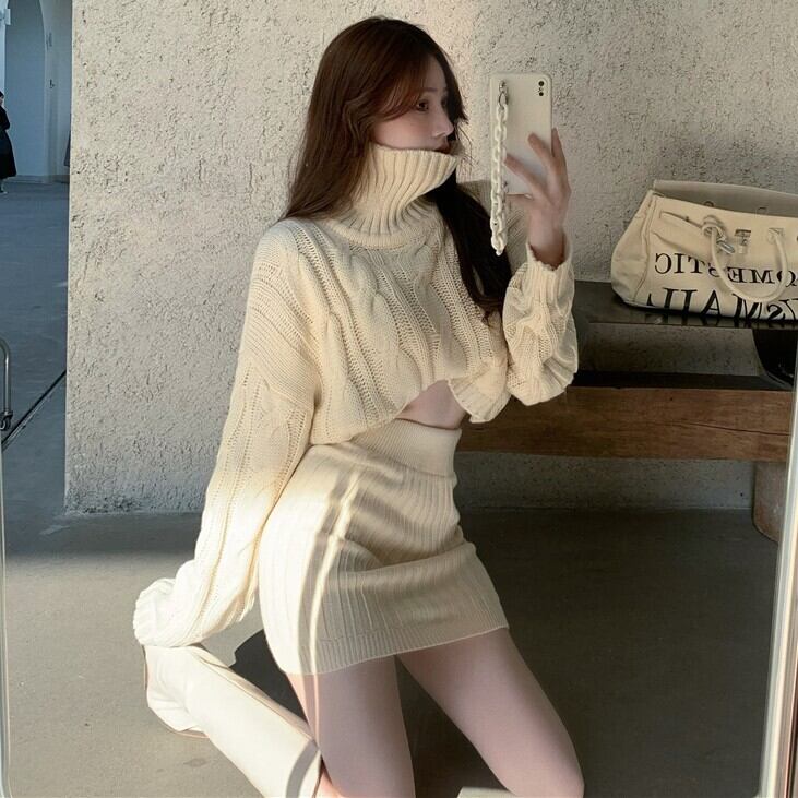 スプリングショートセーター ハイウェストウェストスカート レディース ロング 春物 Xiaofeijia3804382028