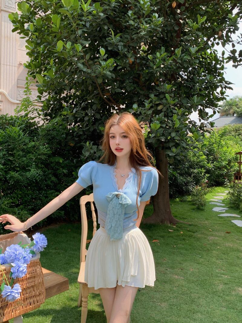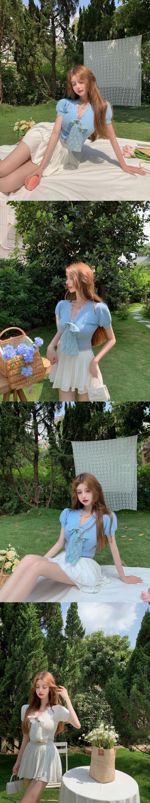 スタイルリボンレースニットセーター トップス ステッチ Xiaofeijia35762538033