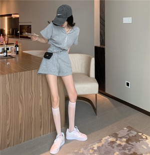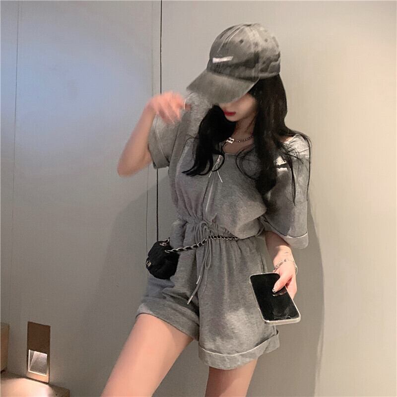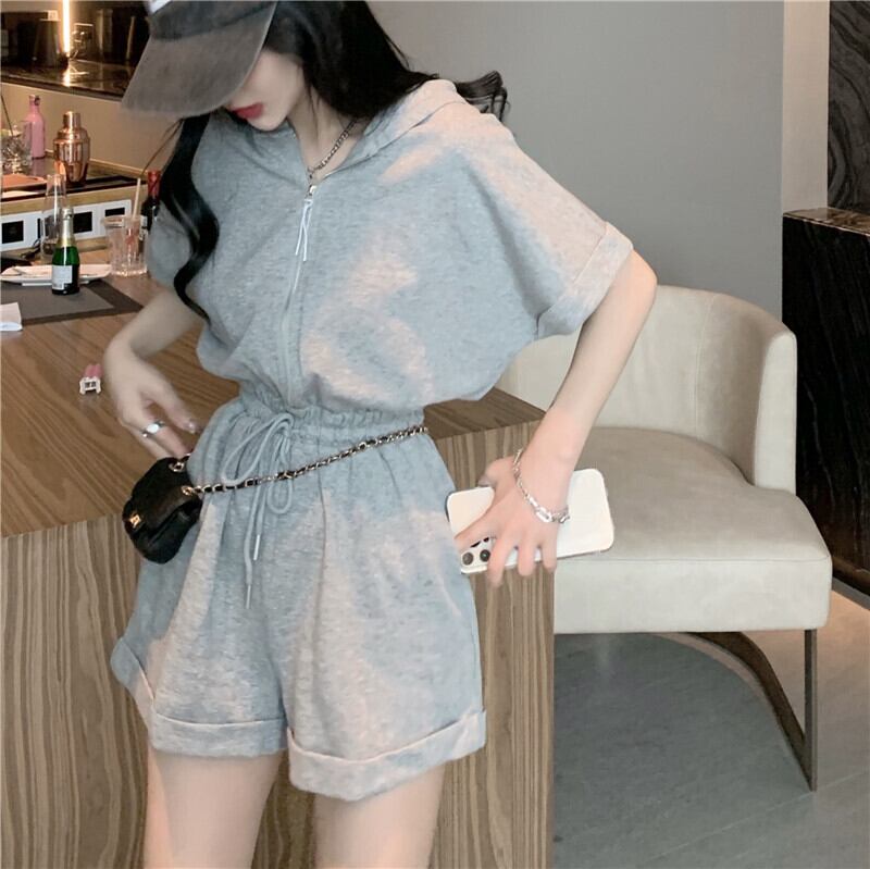 ジッパーフードルーズカジュアルグレージャンプスーツ オールインワン Xiaofeijia78912774726