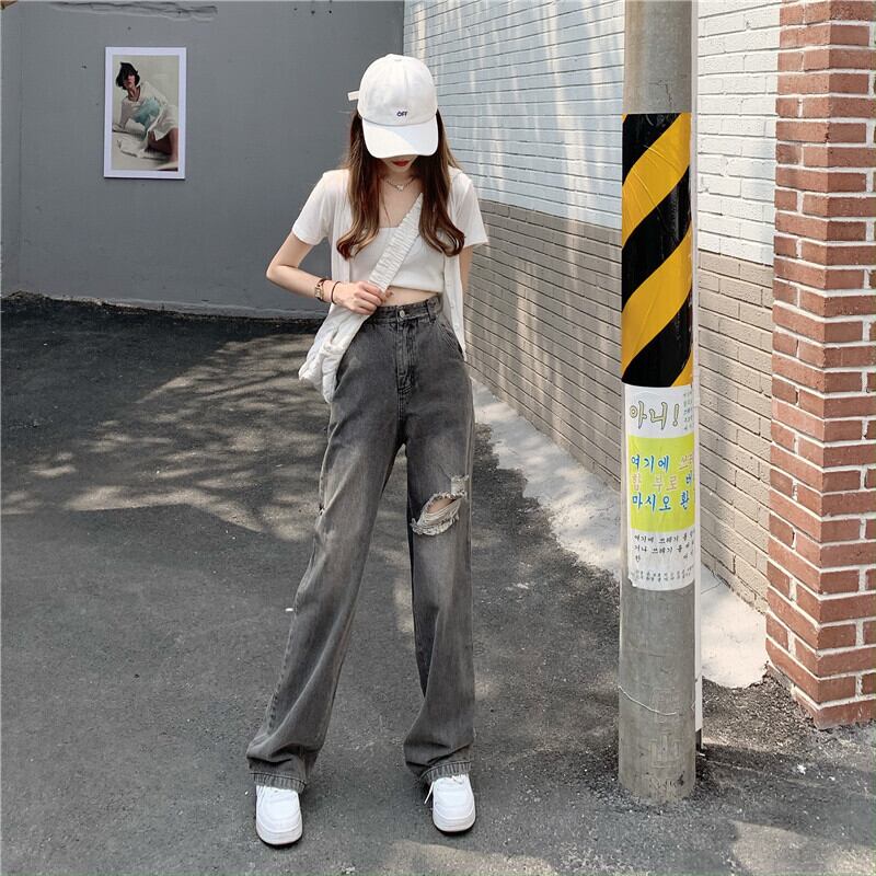 グレーパンツ スプリングルーズジーンズ 春物 Xiaofeijia57858231202