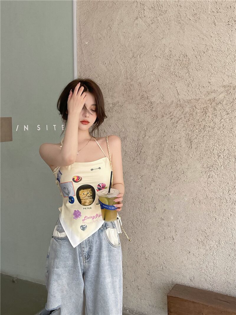 サマープリントホルタートライアングルスカーフ トップス 夏物 Xiaofeijia37862641482