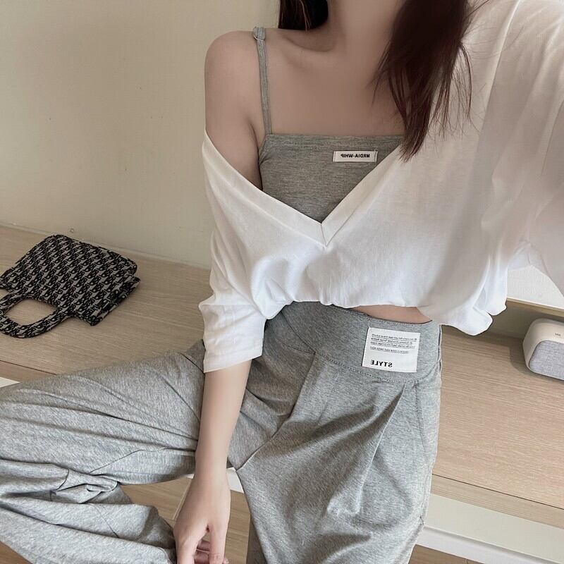 レッドサマーホルターハイウェストウェストカジュアルパンツ レディース シャツ 夏物 Tシャツ Xiaofeijia66807096321