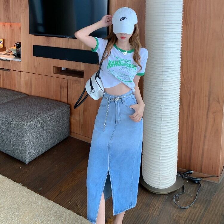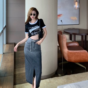 プリント柄トップス ハイウェストウェストスカート チェーン ベルト ハーネス Xiaofeijia35408677109