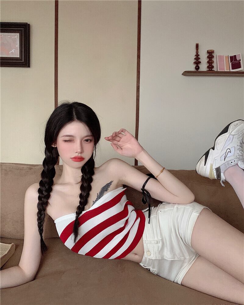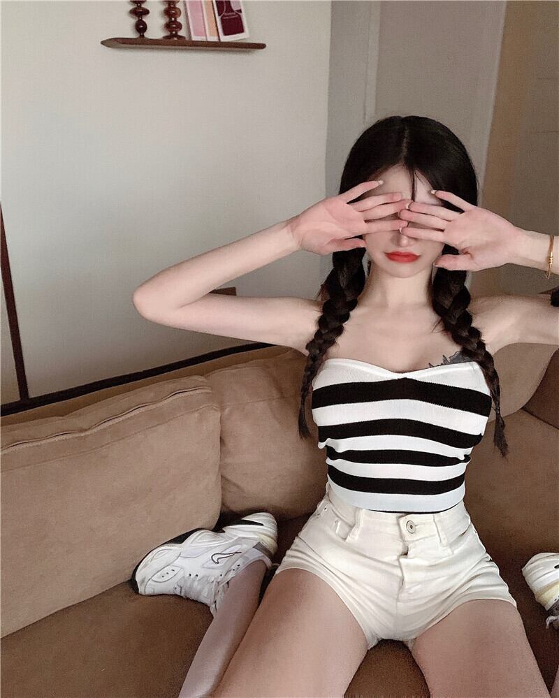 ストライプスリムトップス 大人ガーリー スウィート キュート カジュアル Xiaofeijia70093806896