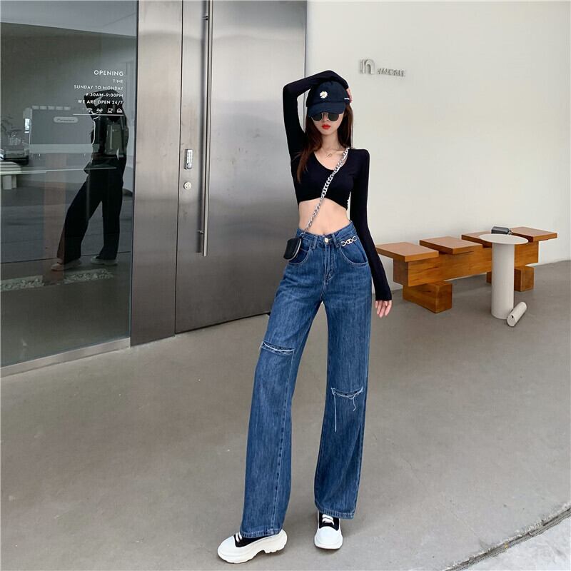 バックポケットジーンズ ハイウェストウェストスリムパンツ スプリングスタンダードレディース レトロ 春物 Xiaofeijia49587884482