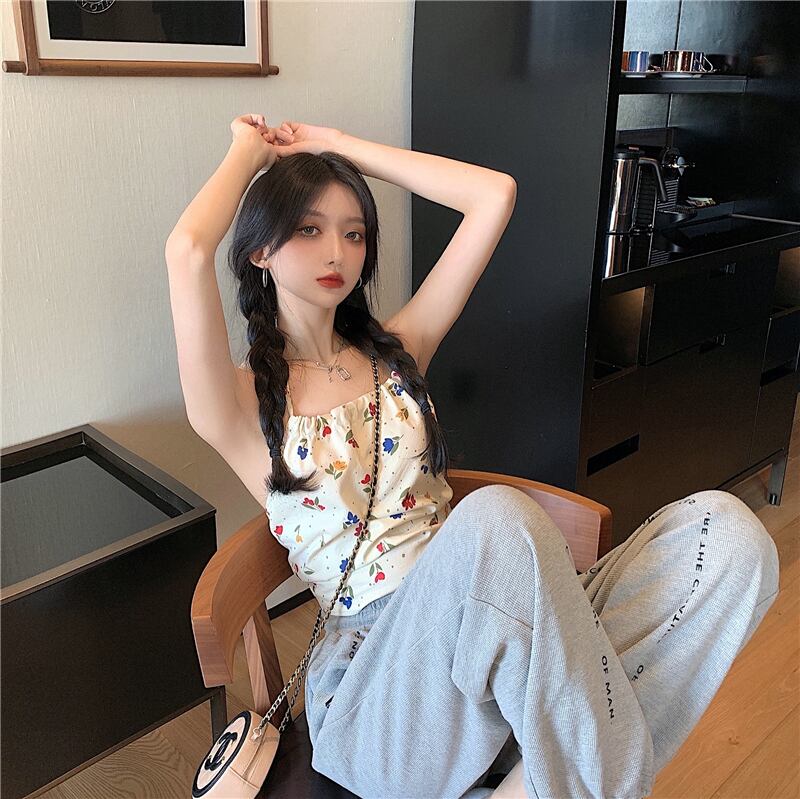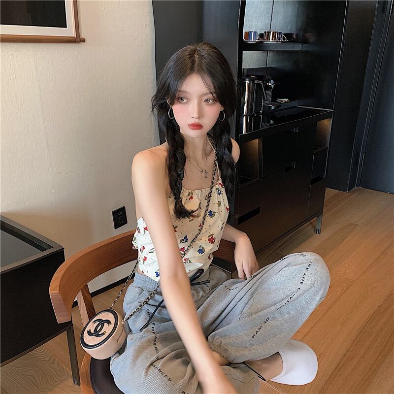 Flowerデザイン フローラルギャザーホルターサマーバックトップス リボン レース 夏物 花柄 レースアップ フラワーデザイン Xiaofeijia58343842060