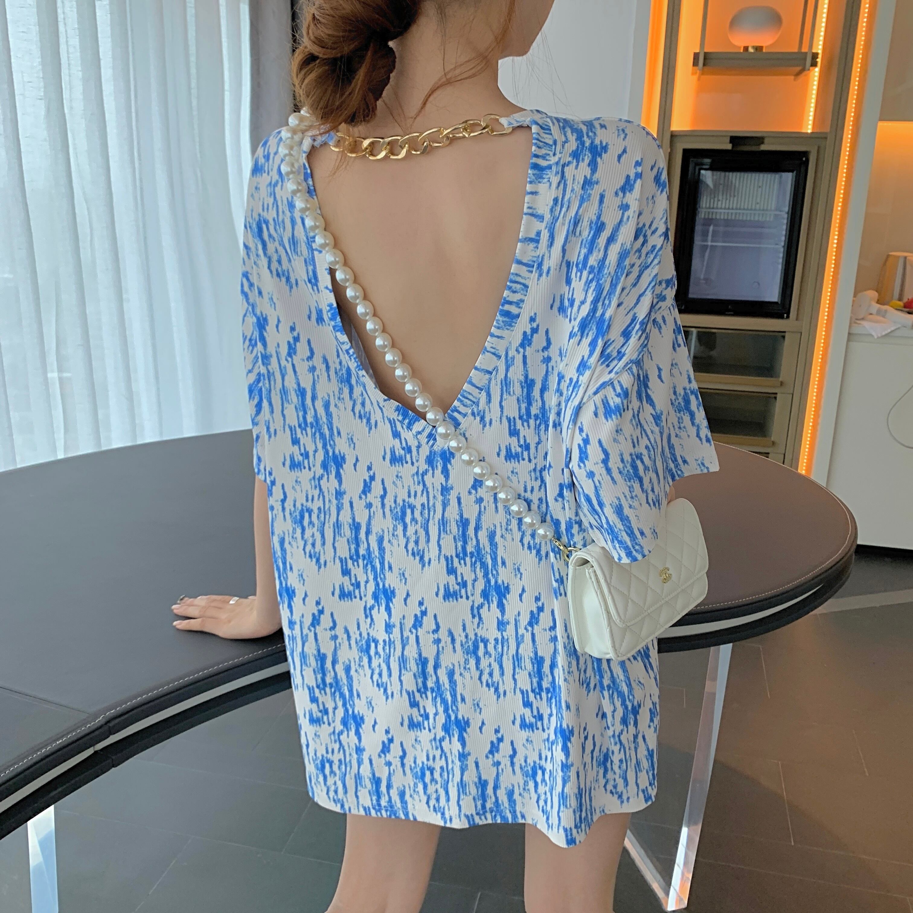 バックチェーン Tシャツ プリントトップス サマー レッド 夏物 Xiaofeijia48057589418