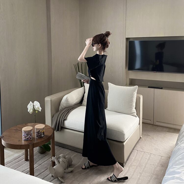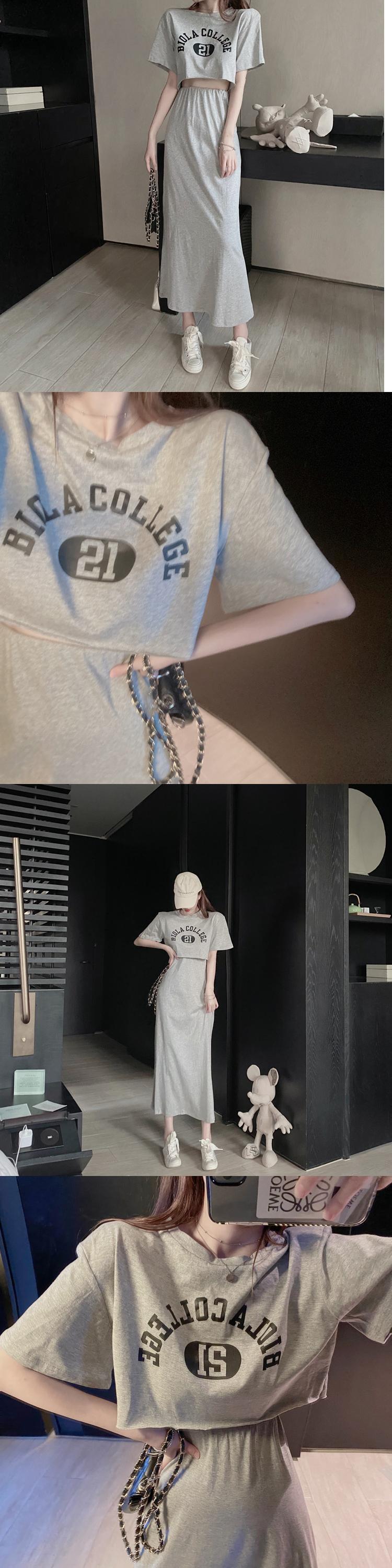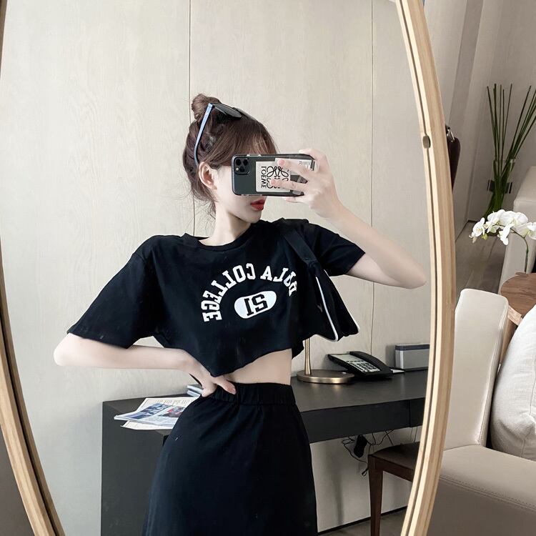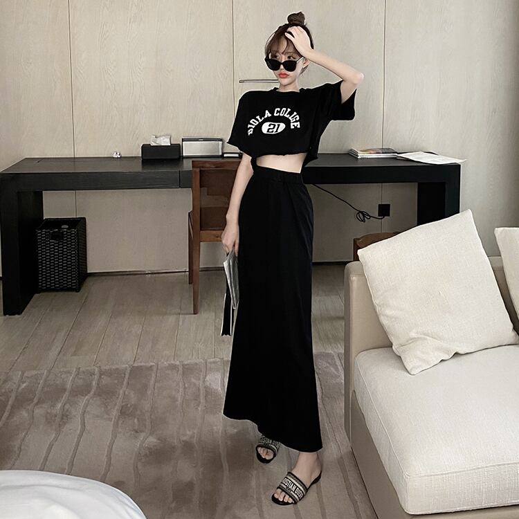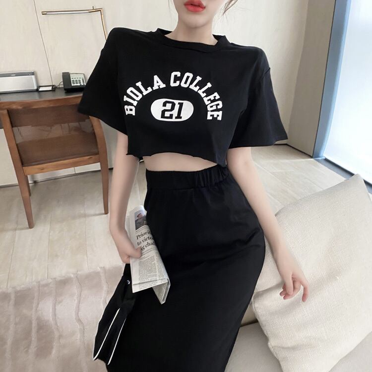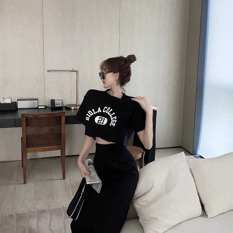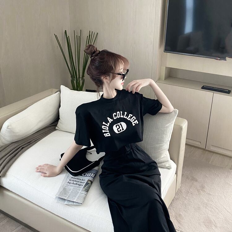 サマーショートルーズTシャツ ハイウェストウェストスカート 夏物 Xiaofeijia83513805716