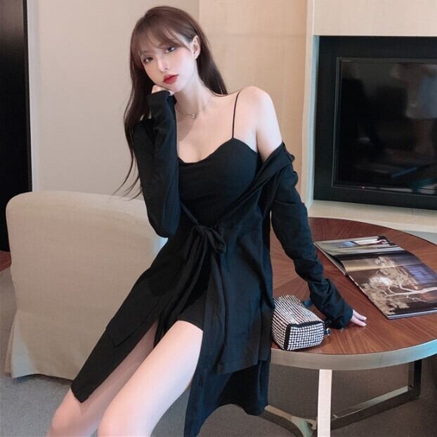 フードカーディガンジャケット ドレス スプリングセット 春物 Xiaofeijia69981118048