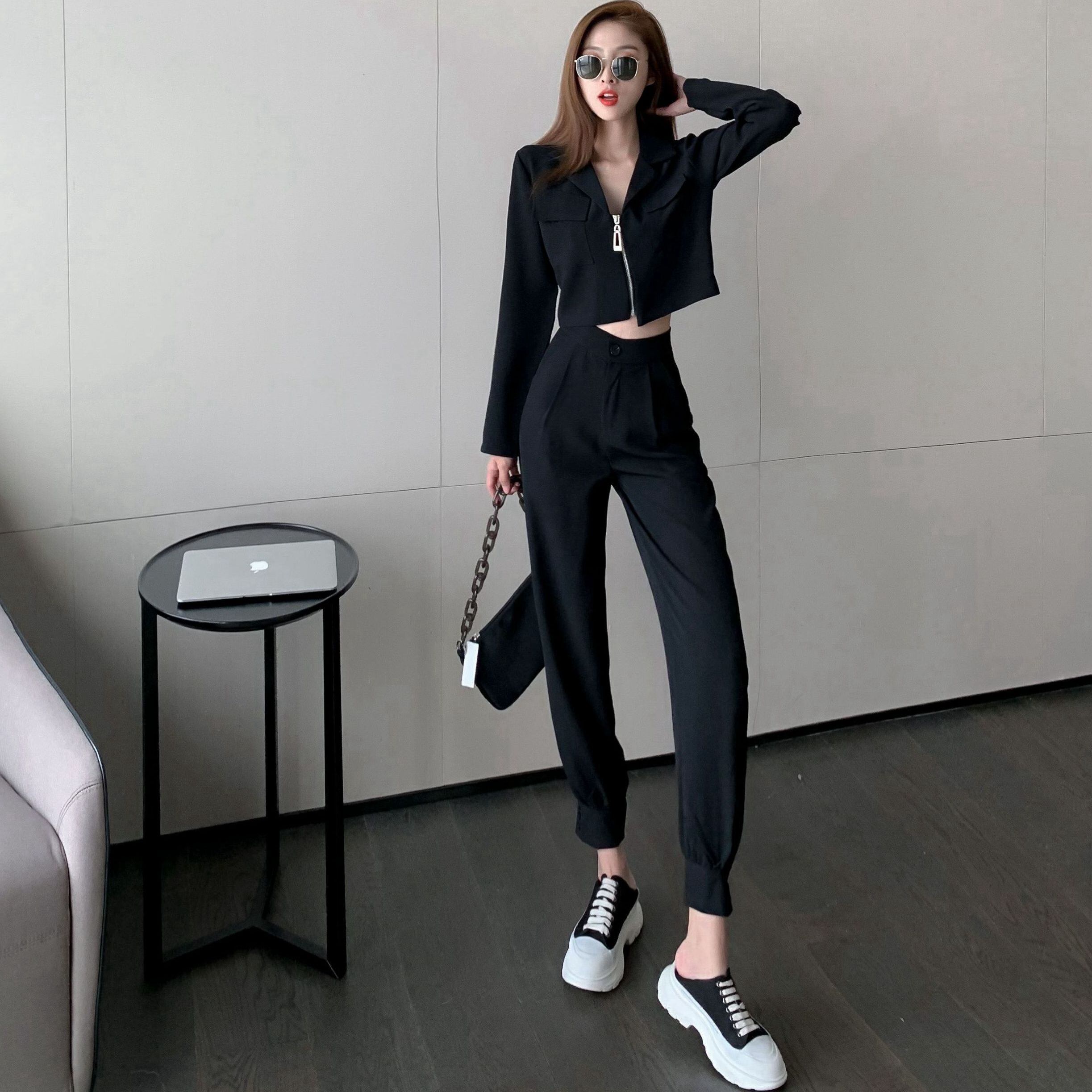 色:ブラックトップ,アプリコットトップ,黒いズボン,アプリコットパンツ