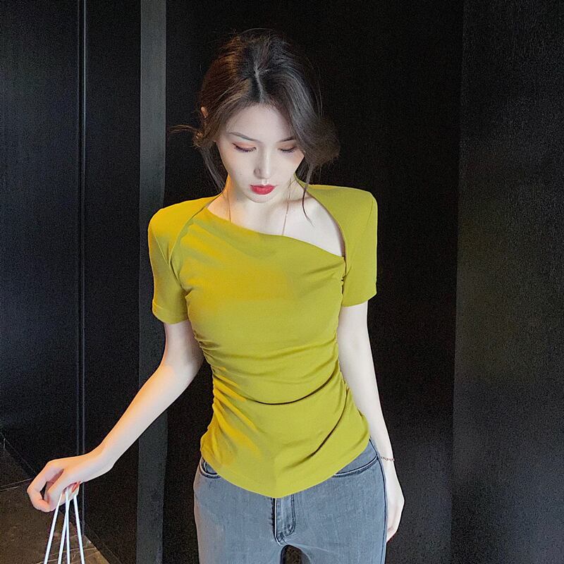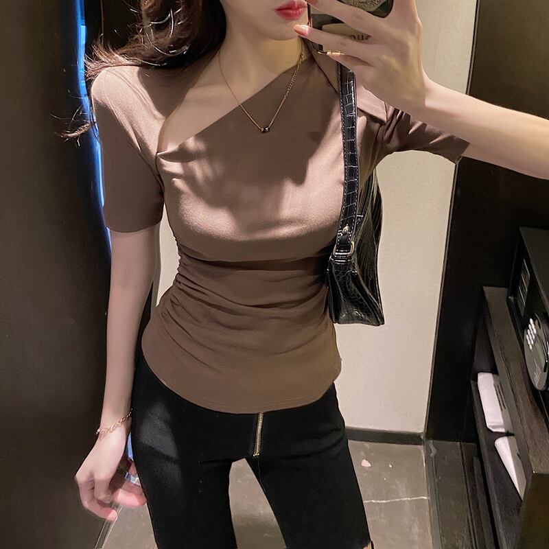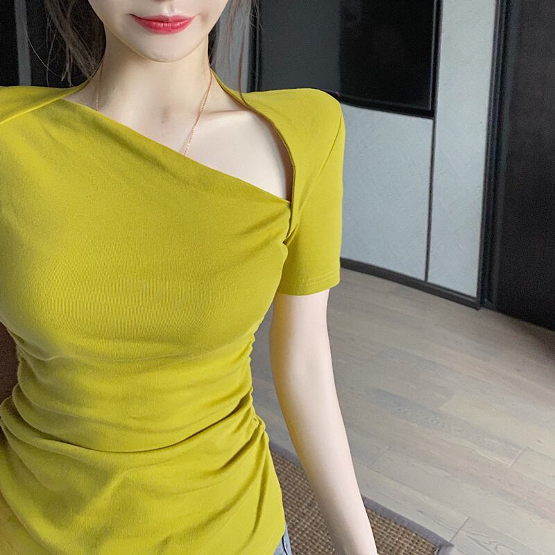 スプリングスリムトップス シャツ 半袖スリーブTシャツ ショート ハーフスリーブ 春物 Xiaofeijia63807395880