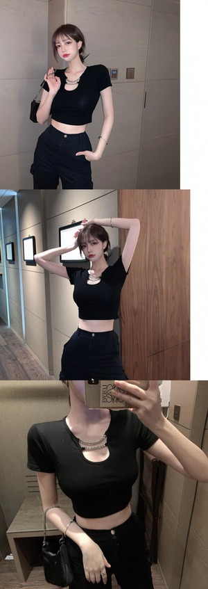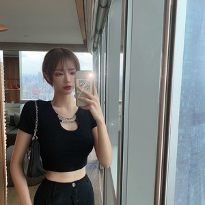 サマーショートチェーン Tシャツ シャツ 薄手スリムハイウェストトップス 夏物 Xiaofeijia18748759635
