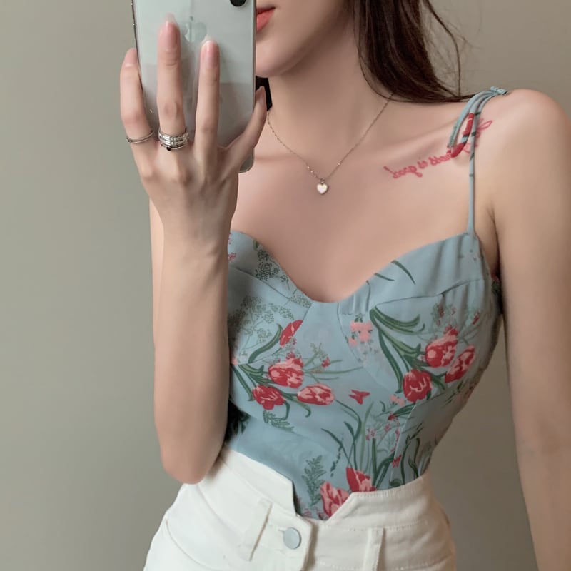 ノースリーブサマーベルト バックプリント柄クロップドトップス レディース 夏物 ハーネス ヨーロピアン Xiaofeijia27021506244