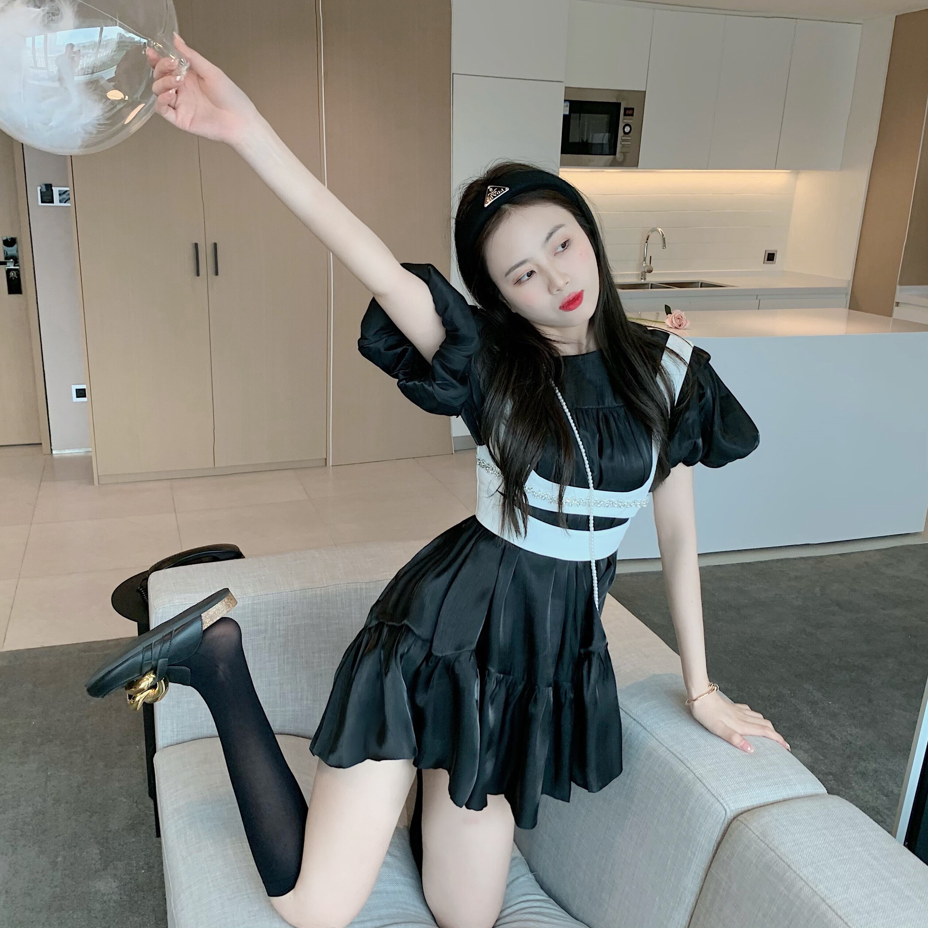 スタンダードウェスト薄手ブラックドレス レディース レトロ Xiaofeijia6499996786