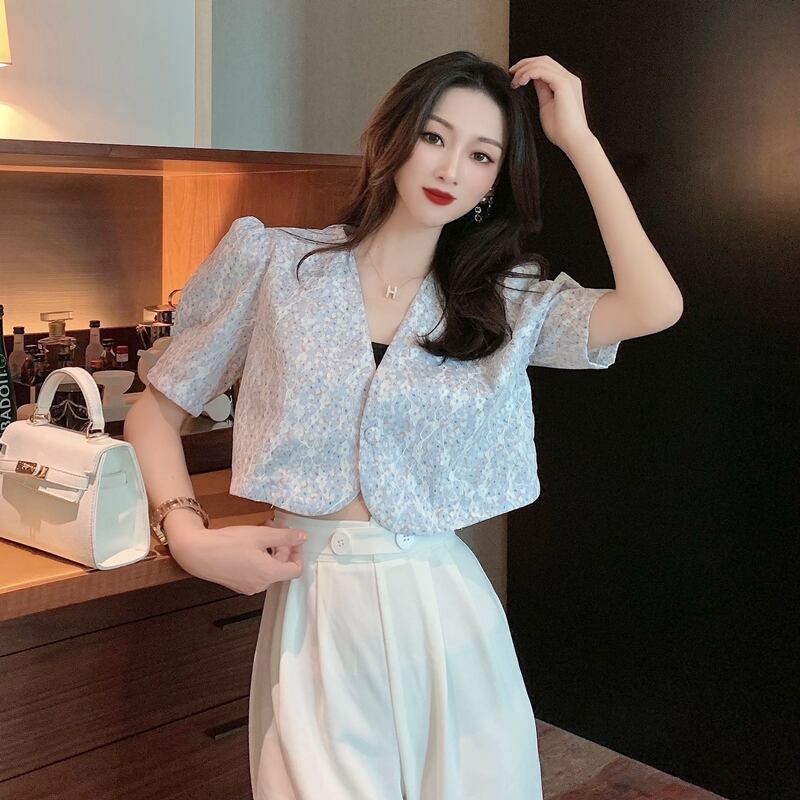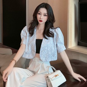 サマースタイルジャケット スリーブフローラル半袖ルーズ薄手カーディガントップス ショート ハーフスリーブ 夏物 花柄 Xiaofeijia75779861216