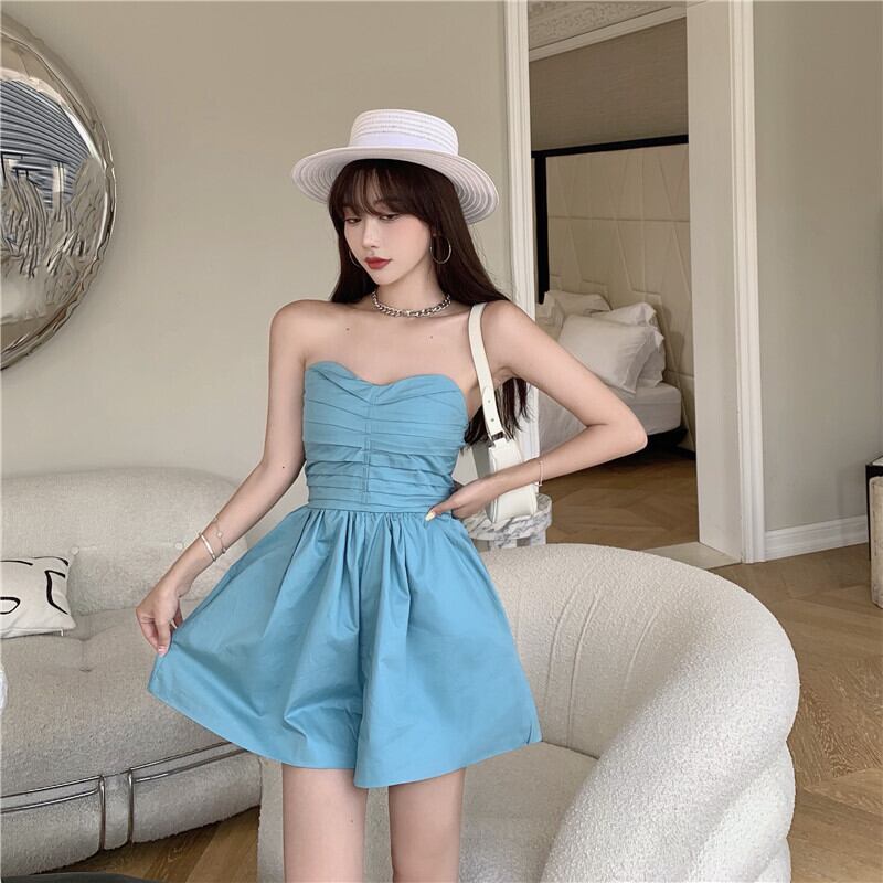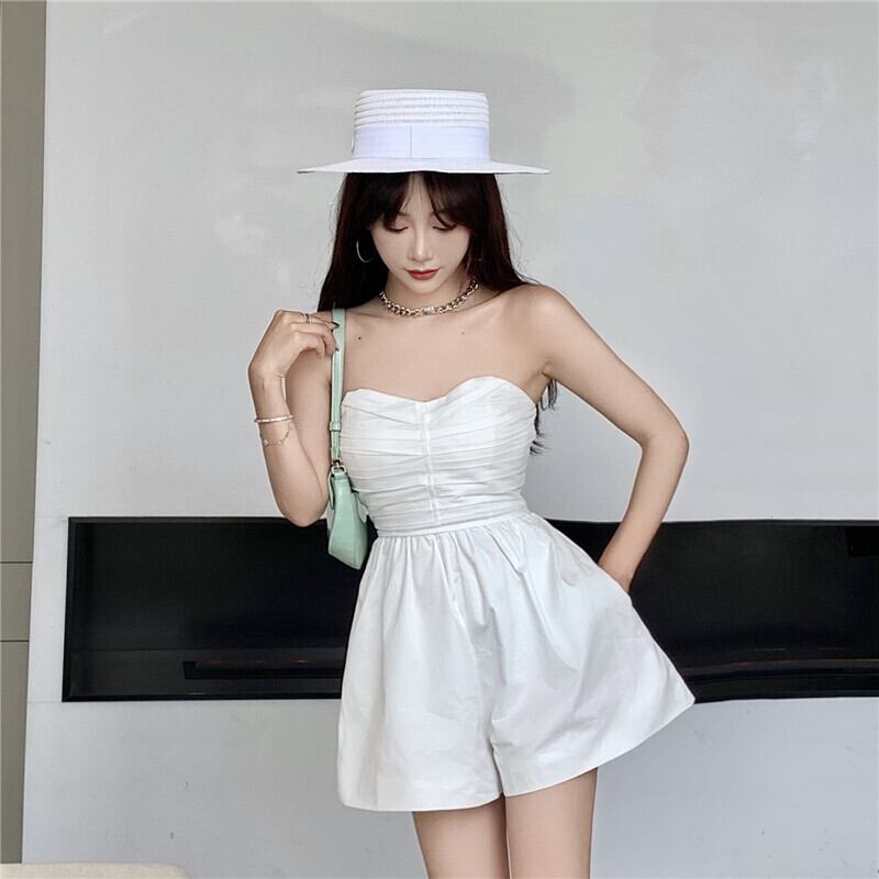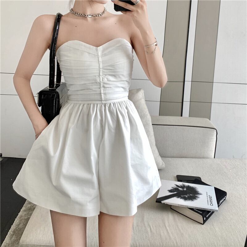 ハイウェストウェストプリーツジャンプスーツ オールインワン レディースサマー薄手ホワイトパンツ トップス ワイドレッグショーツ 夏物 ブルマー ワイドパンツ Xiaofeijia9835208958