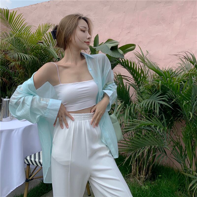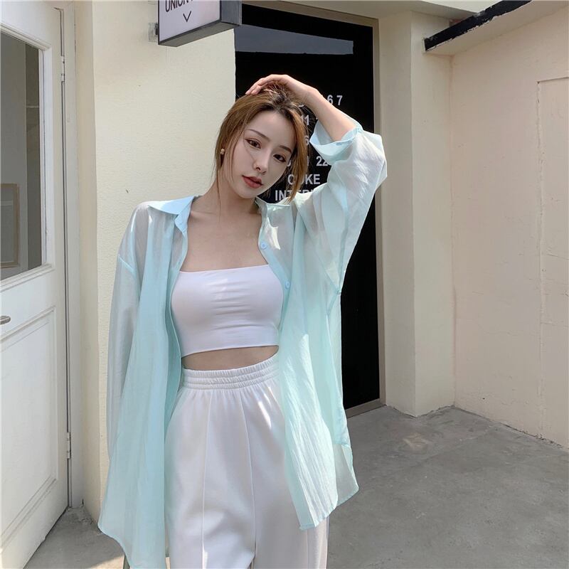 サマー薄手シャツ レディースルーズバックトップス シフォン ロング 夏物 Xiaofeijia31350308863