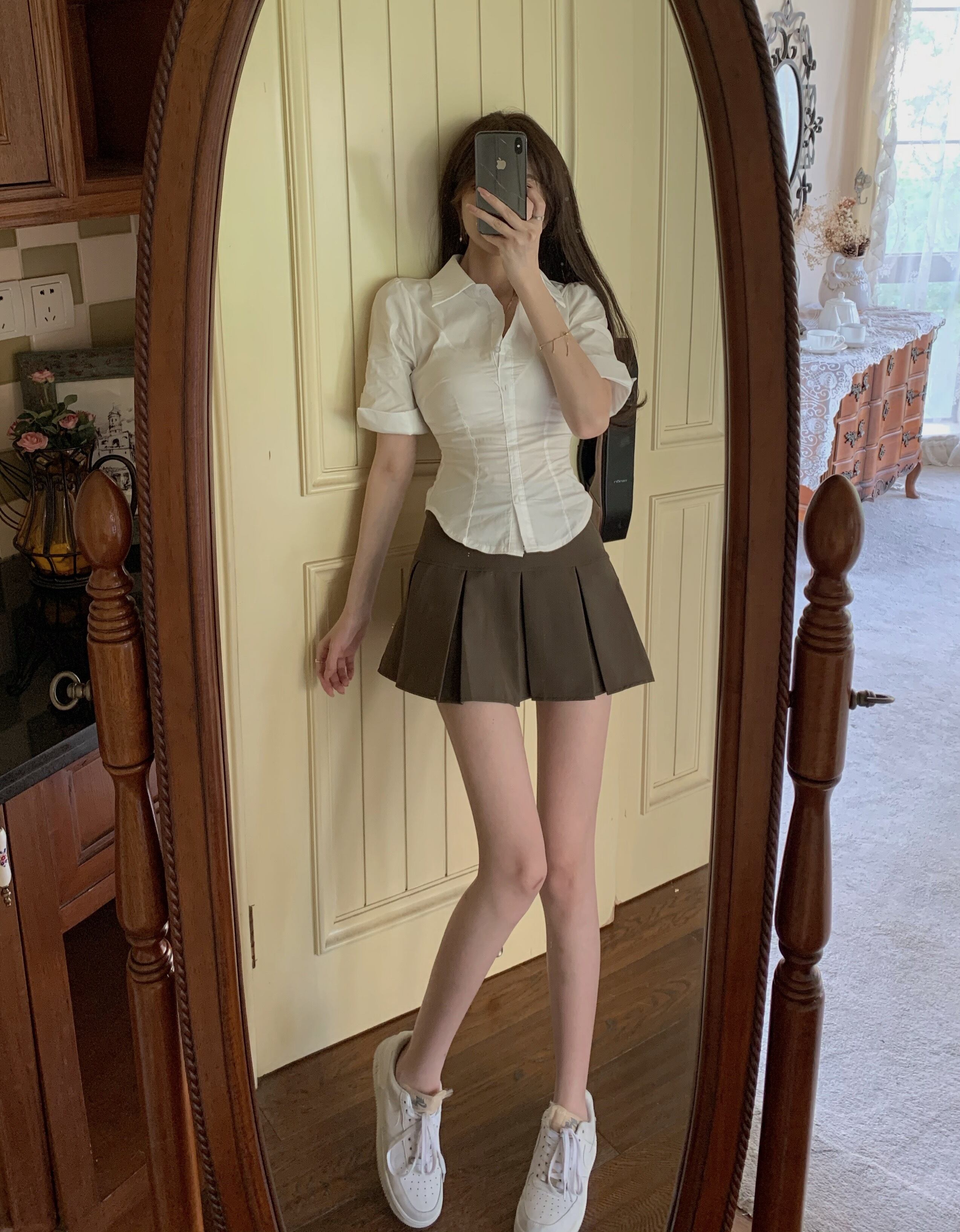 シャツ プリーツスカート 大人ガーリー スウィート キュート カジュアル Xiaofeijia64659905834
