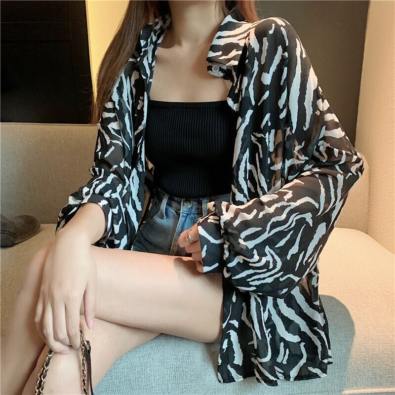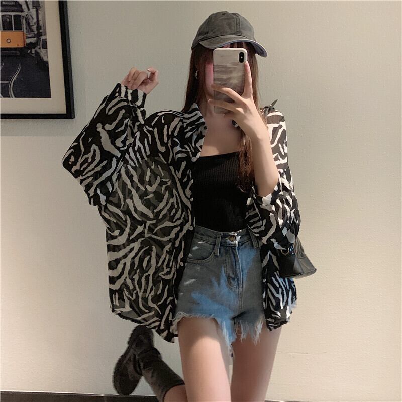 薄手シフォンシャツ サマーカーディガンルーズスタンダードパターントップス レディース ロング レトロ 夏物 Xiaofeijia65924898291
