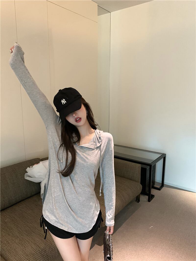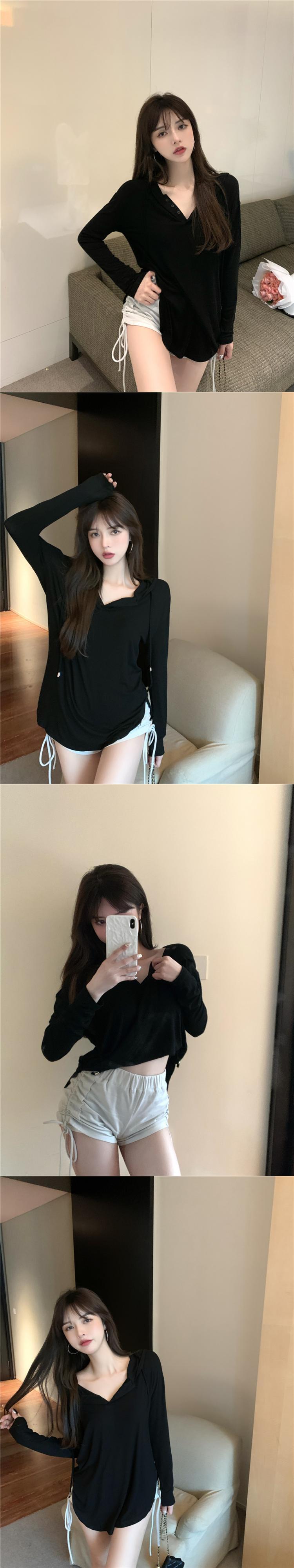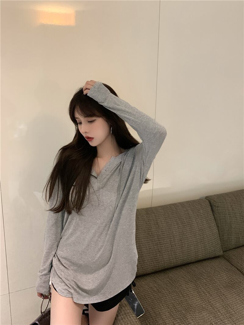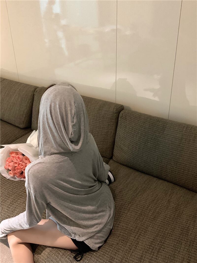 スタイルサマーフードジャケット レディースルーズVネックTシャツ ロング 夏物 Xiaofeijia79994940652