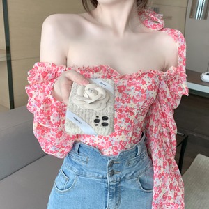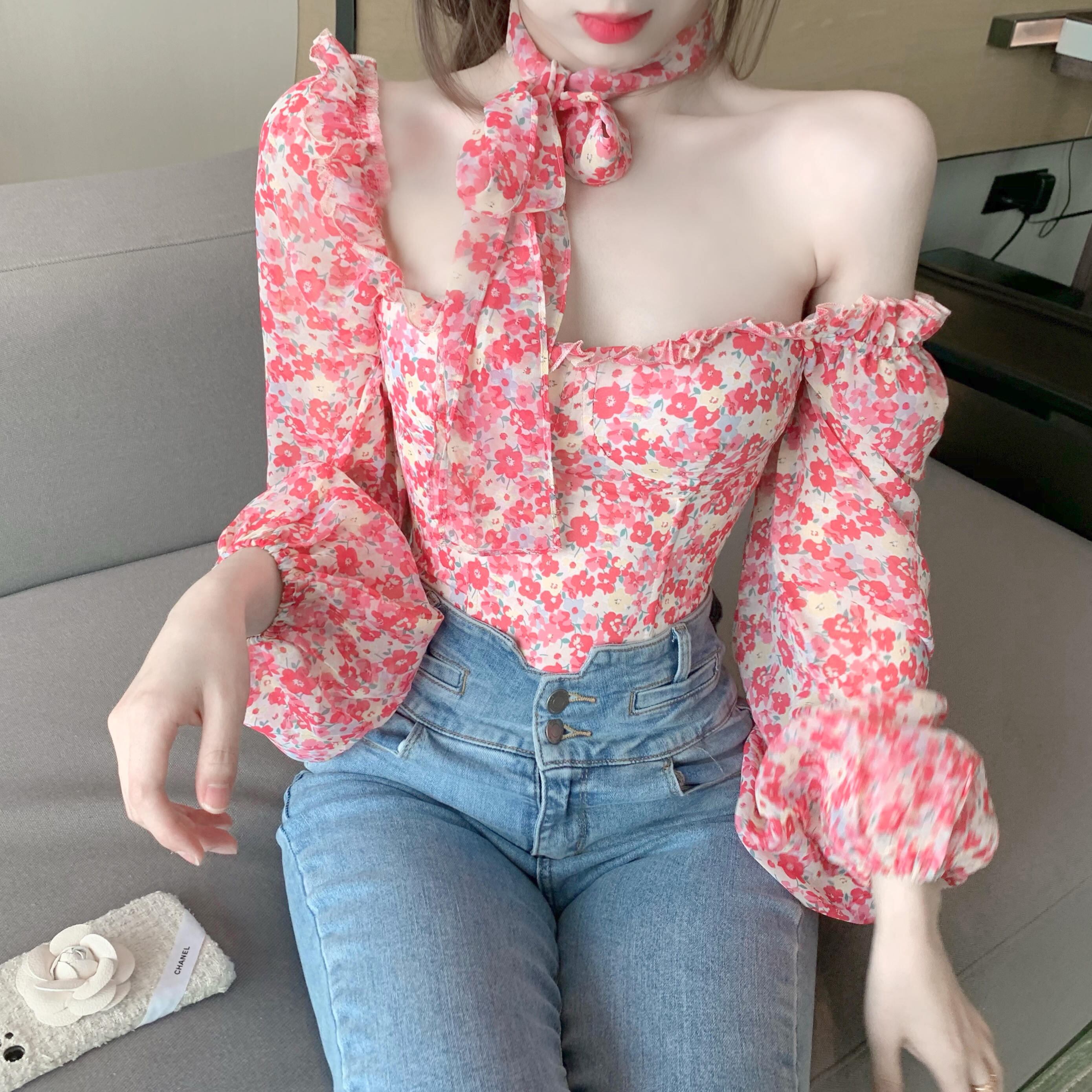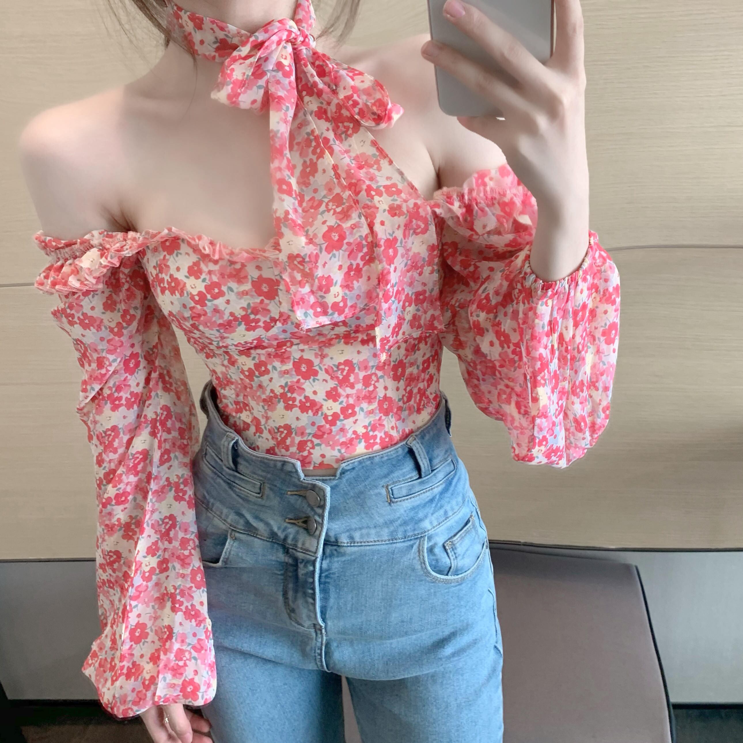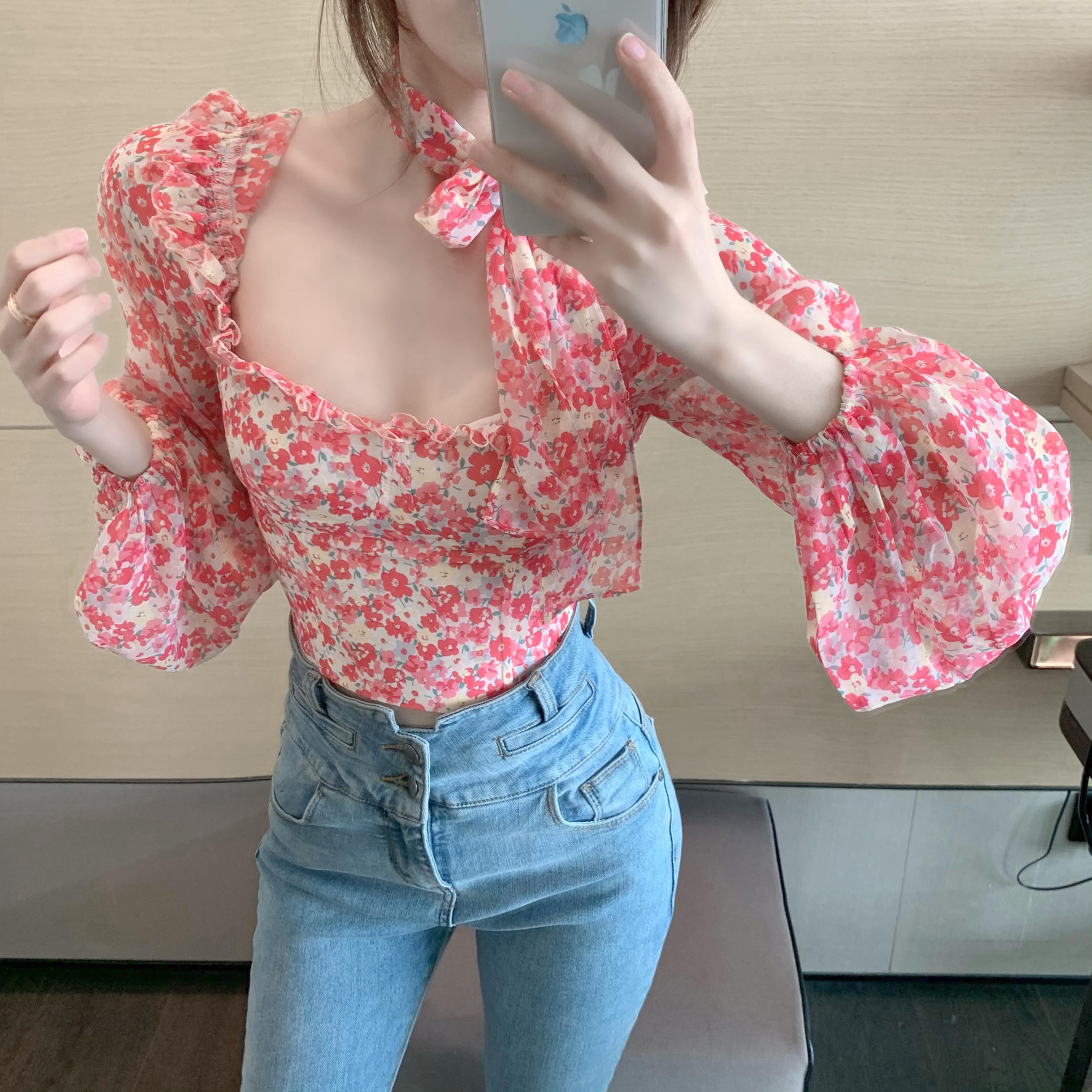 フローラルレースシャツ スプリングスタイルカラーショートトップス ロング 春物 花柄 スクウェア Xiaofeijia53761197516