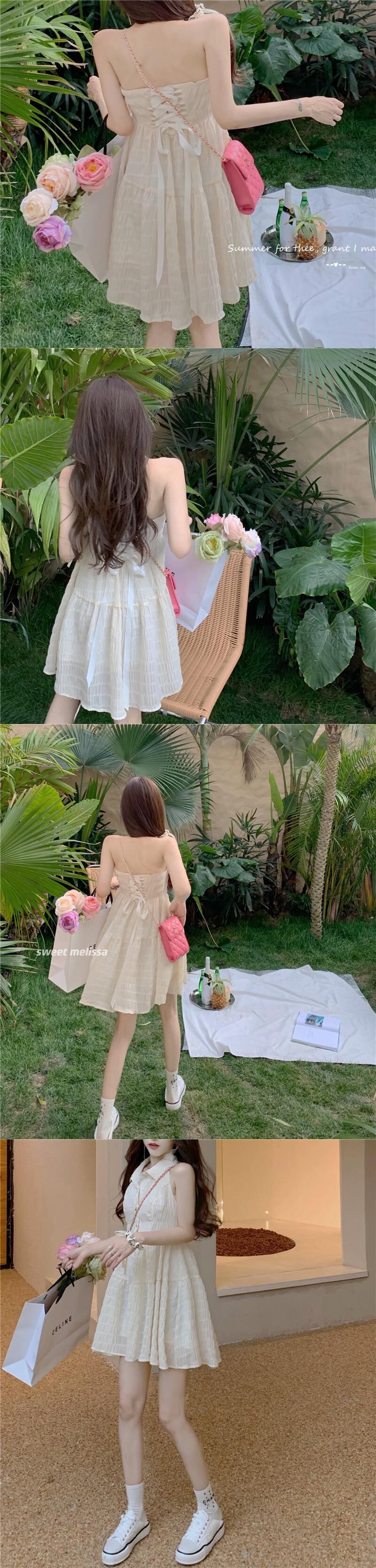 レースホルターウェストドレス 大人ガーリー スウィート キュート カジュアル Xiaofeijia19805769569