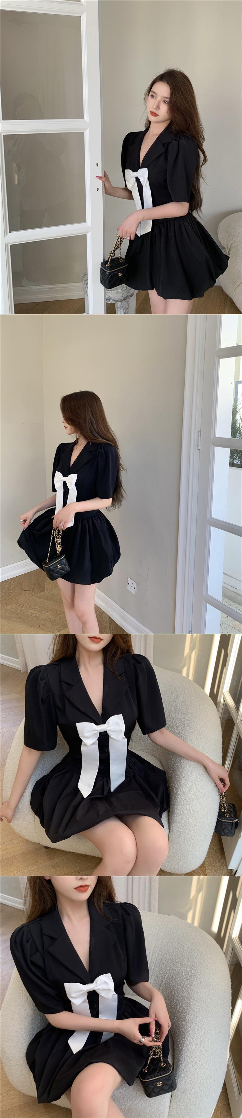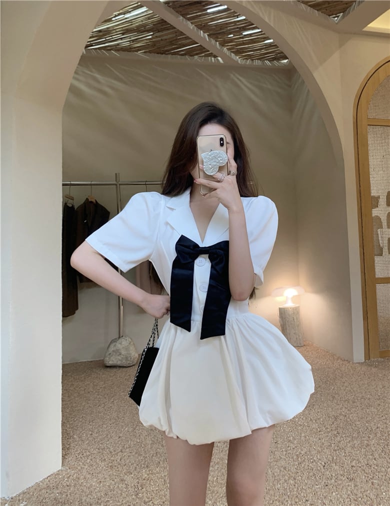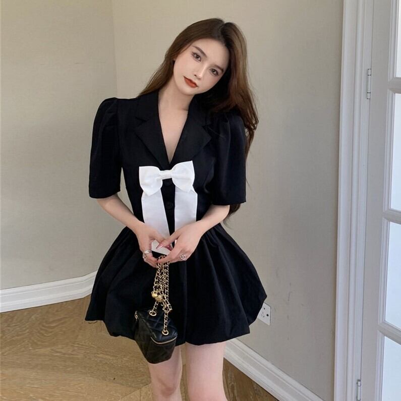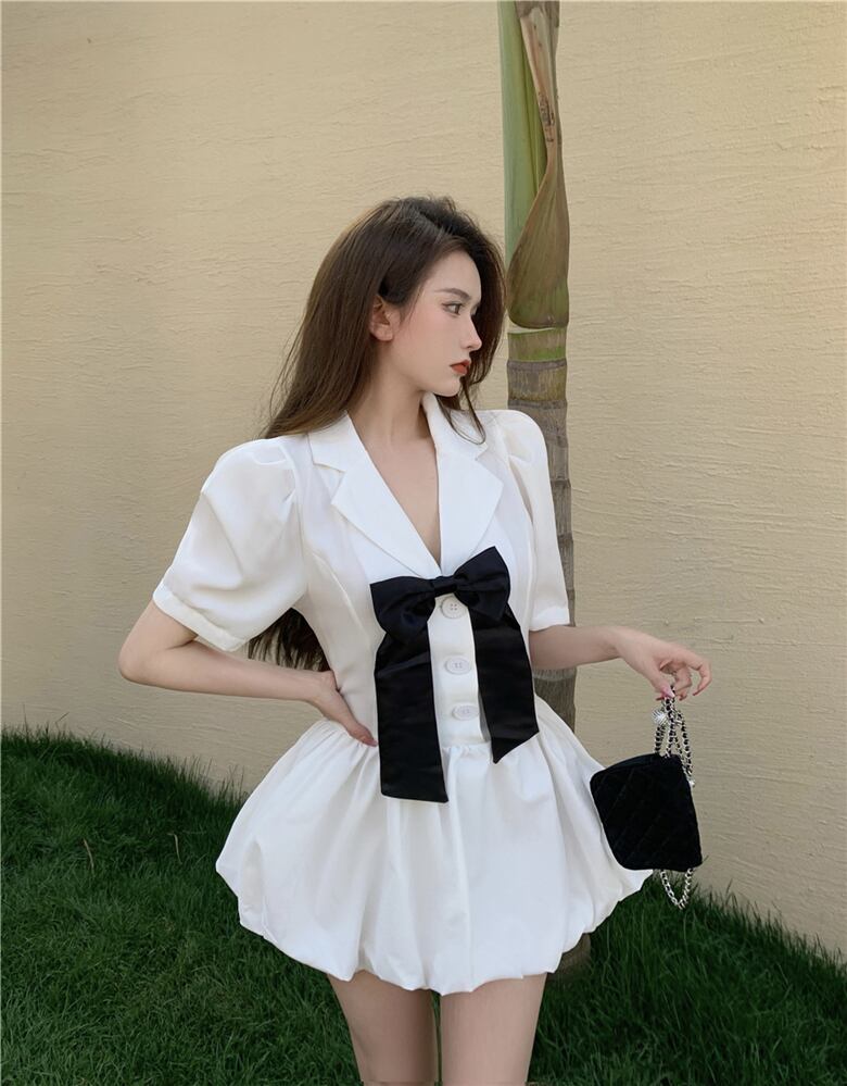 リボンウェストドレス サマーショートハイウェストAラインスカート 大人ガーリー スウィート キュート カジュアル 夏物 Xiaofeijia18120357733