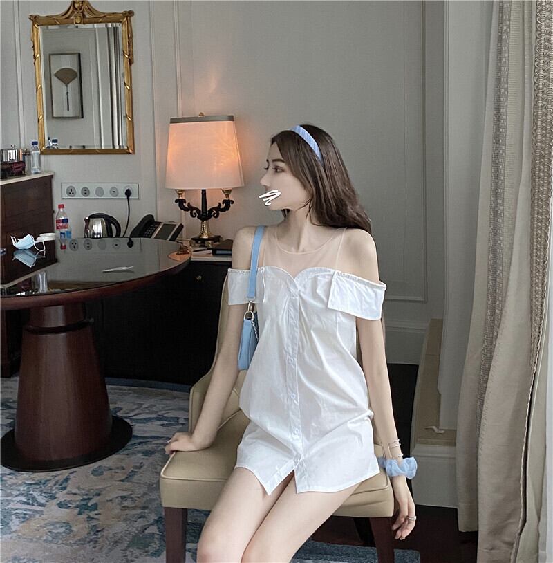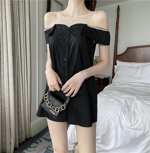 ストラップレスメッシュシャツ ドレス スタイルショートスカート ステッチ Xiaofeijia67377588857
