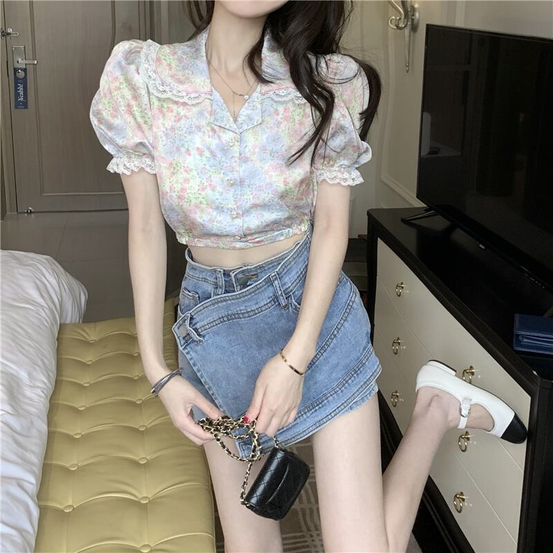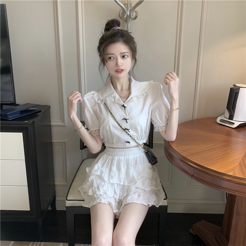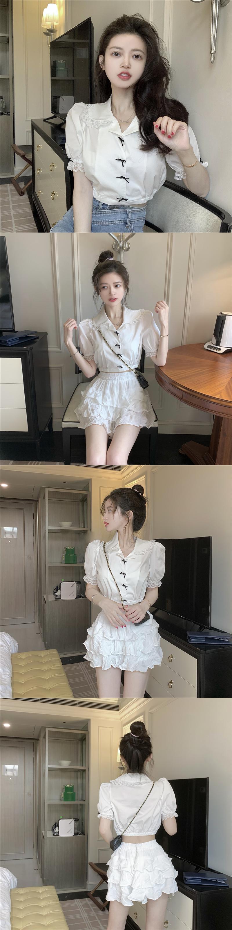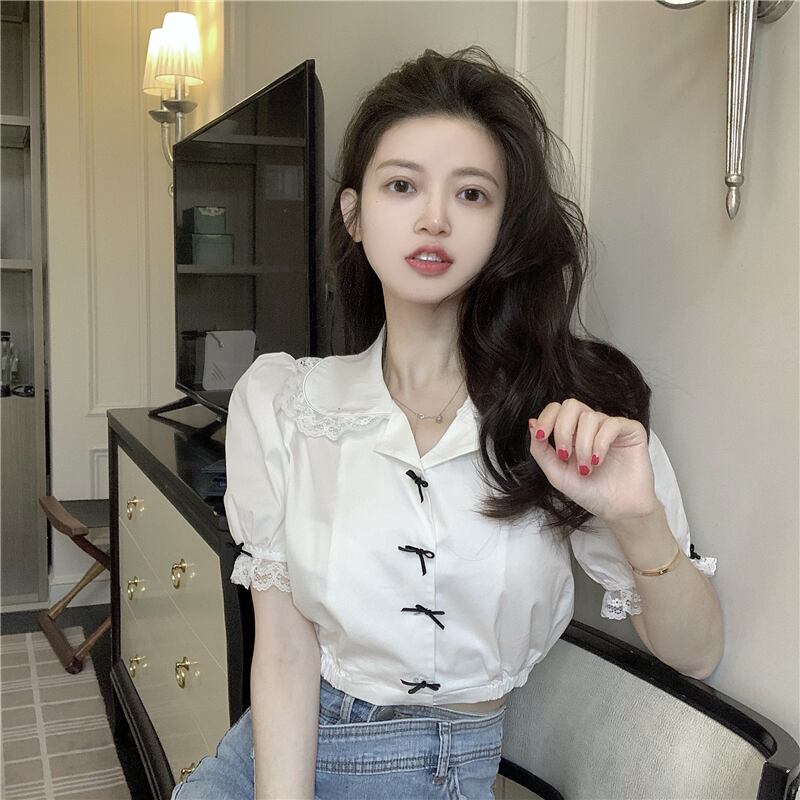ホワイトスタンダードブラウス サマーショートスリーブシャツ レトロ 夏物 Xiaofeijia15912150662