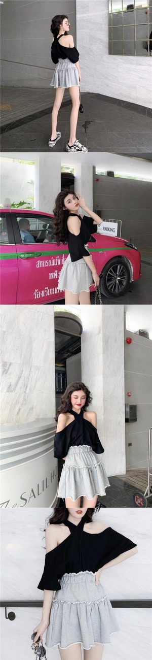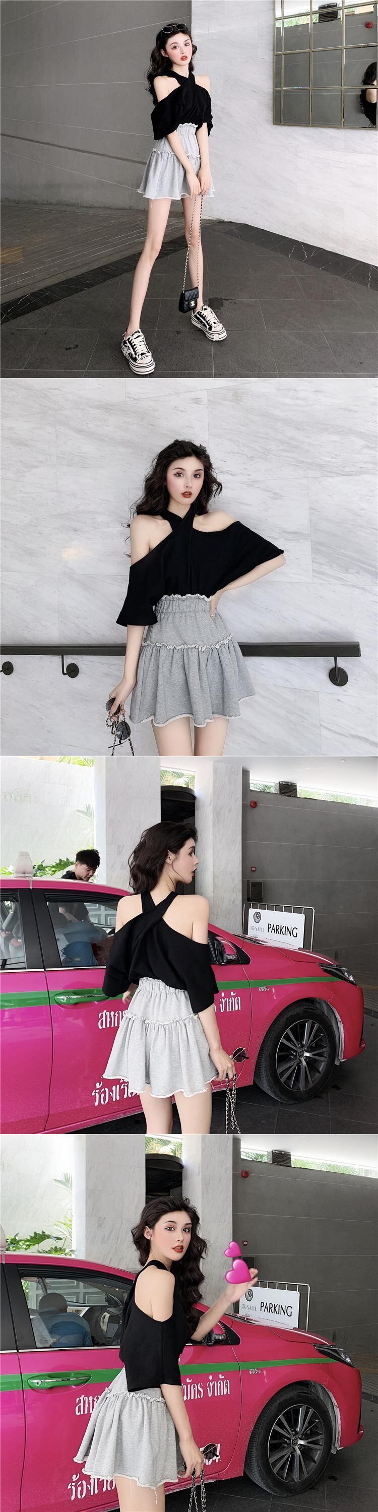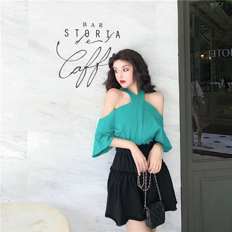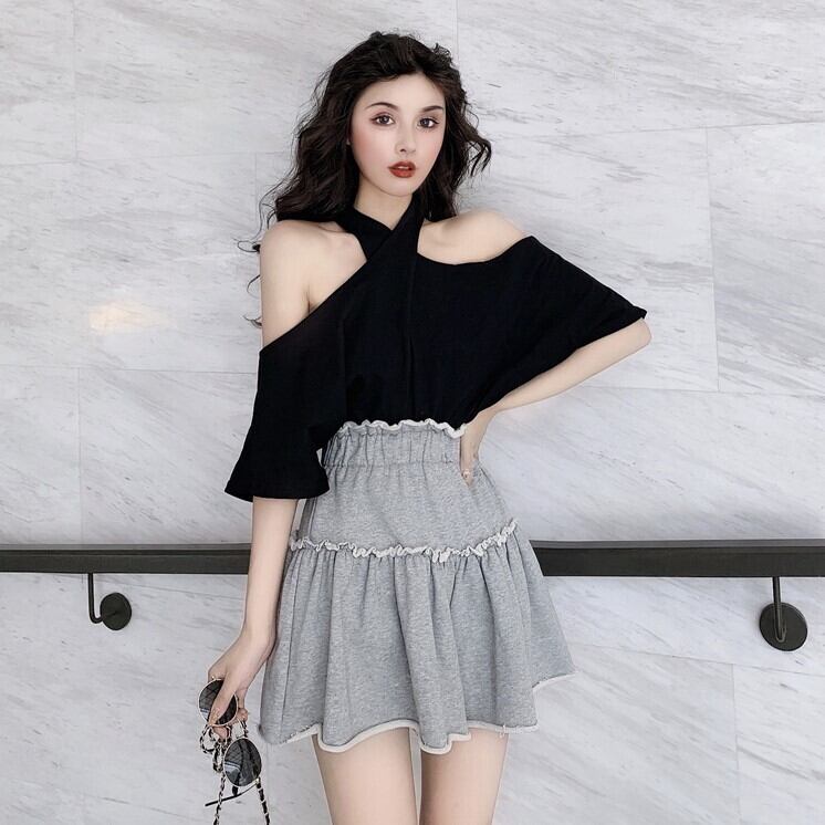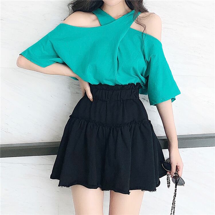 サマースタイルショートトップス ストレッチウェストセーター エラスティック 伸縮 夏物 オフショルダー Xiaofeijia13379477851