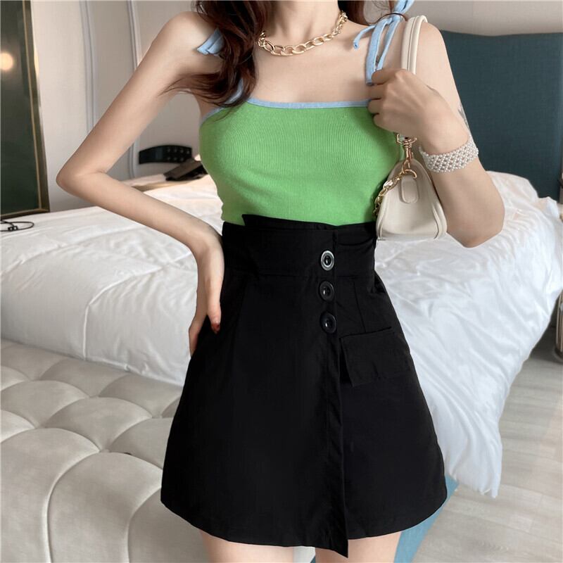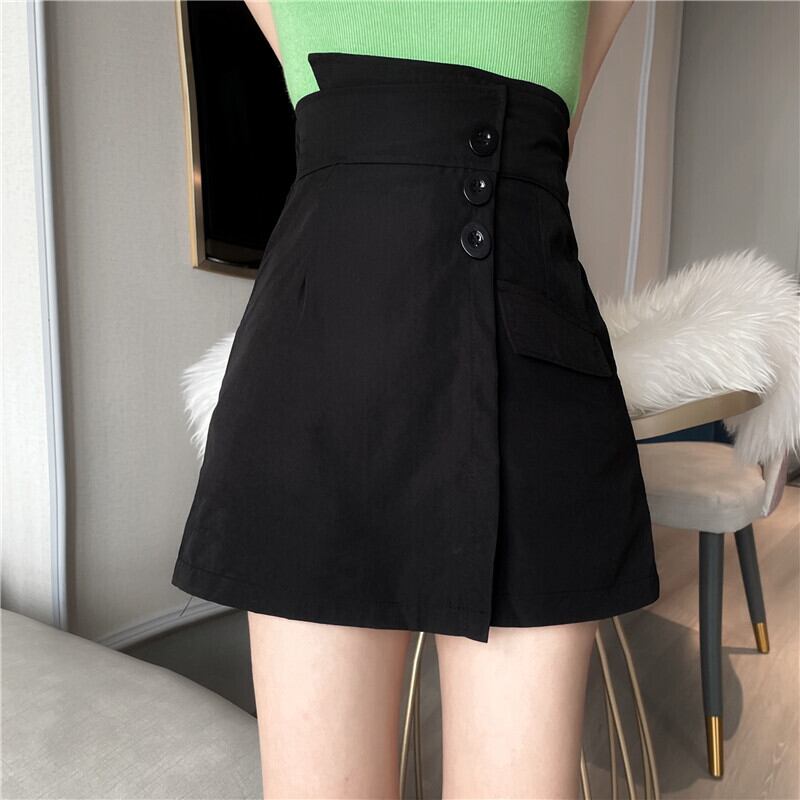 ウェストAラインスカート シングルブレスト薄手ブラックショートサマーレディース 夏物 Xiaofeijia71821119100