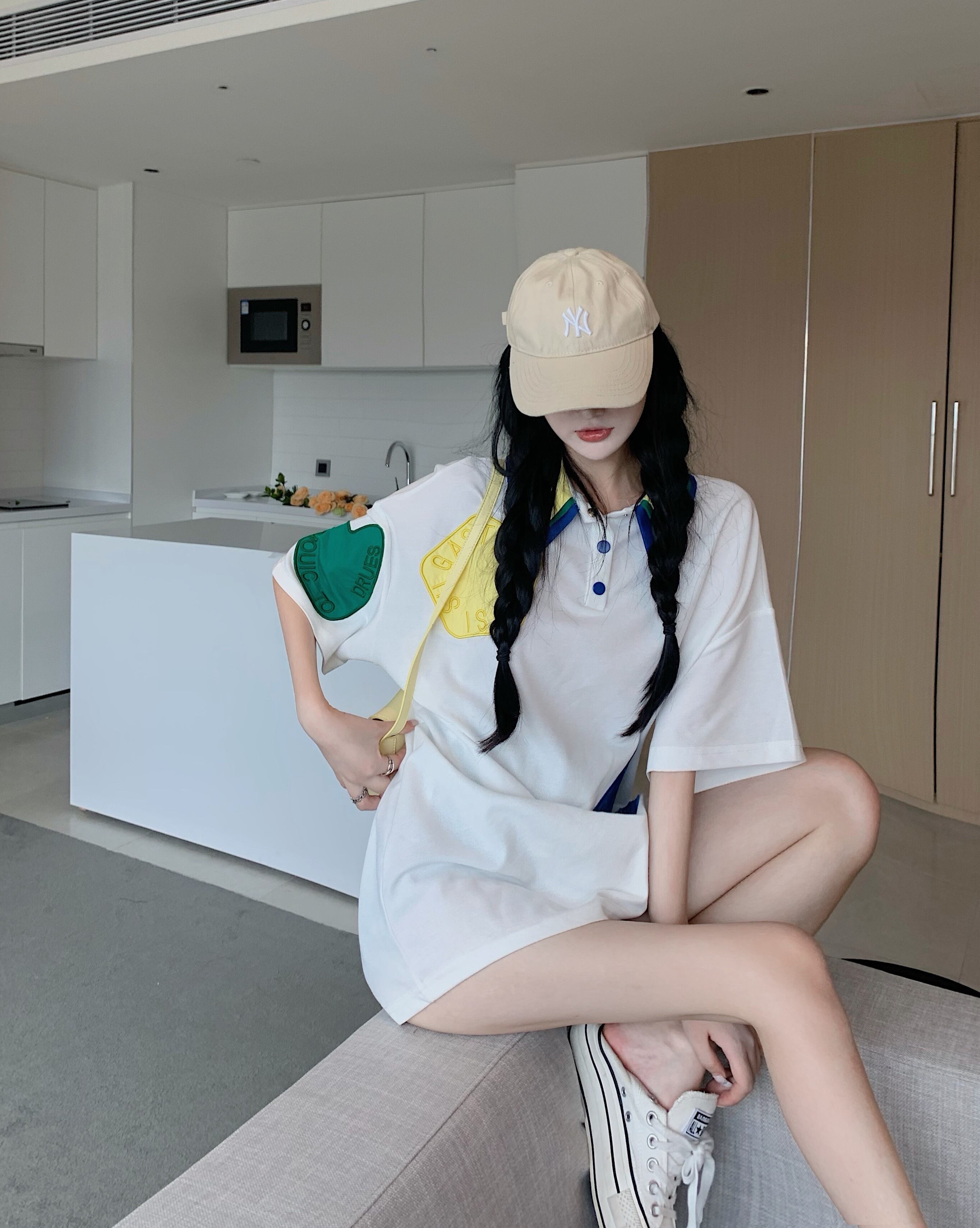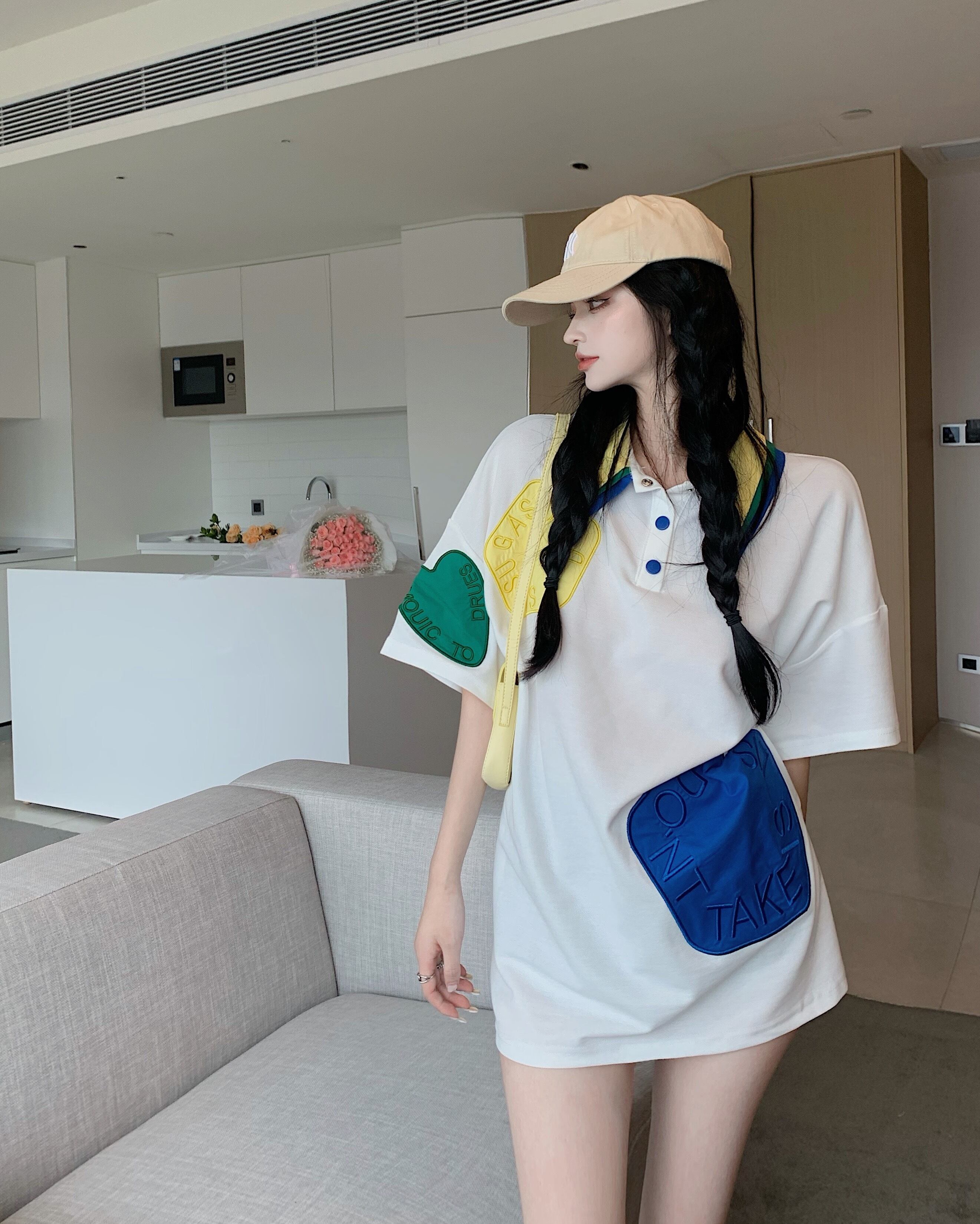 シャツ スタイルTシャツ 刺繍ルーズトップス サマー かわいい 夏物 Xiaofeijia26974466994