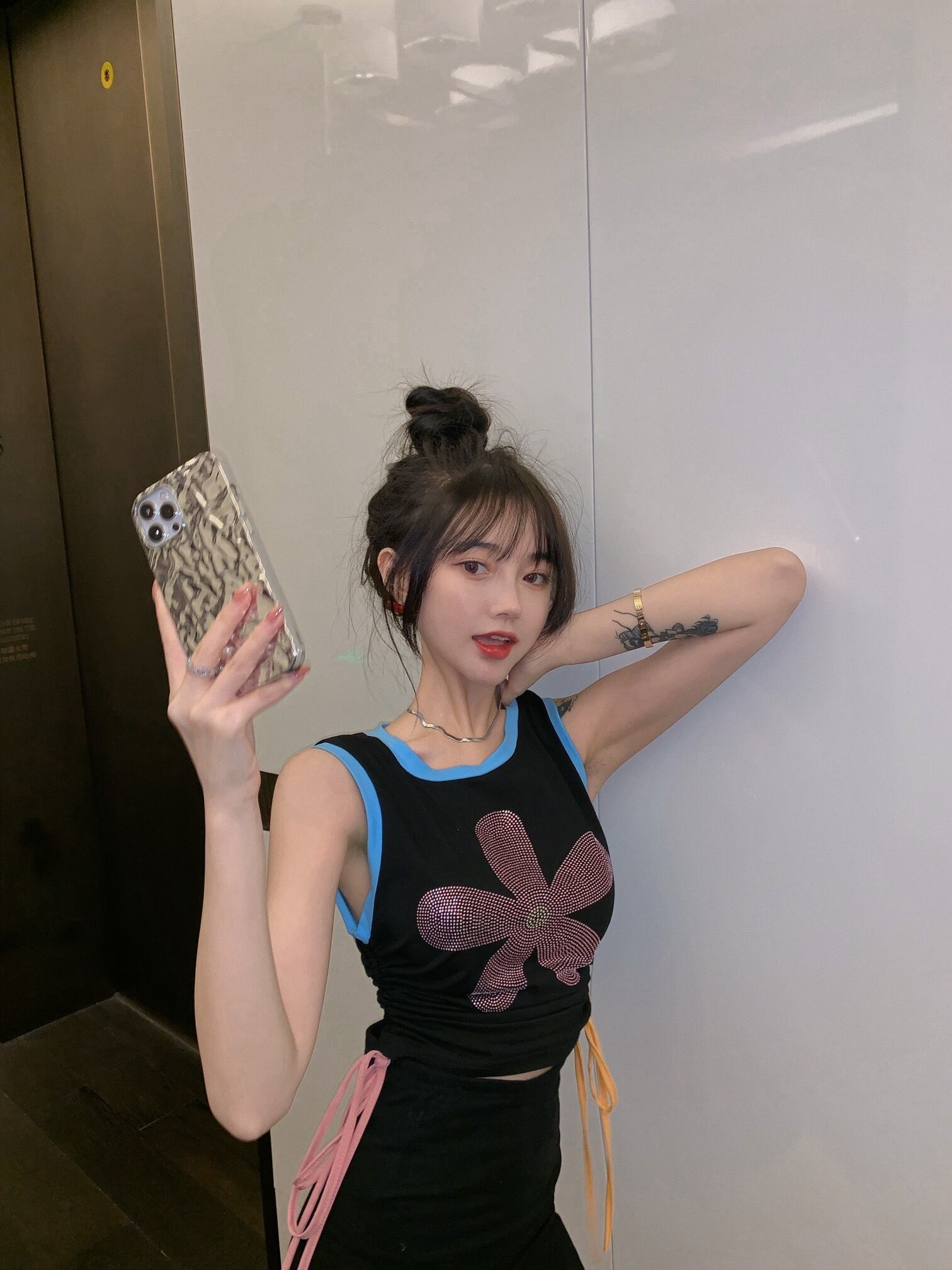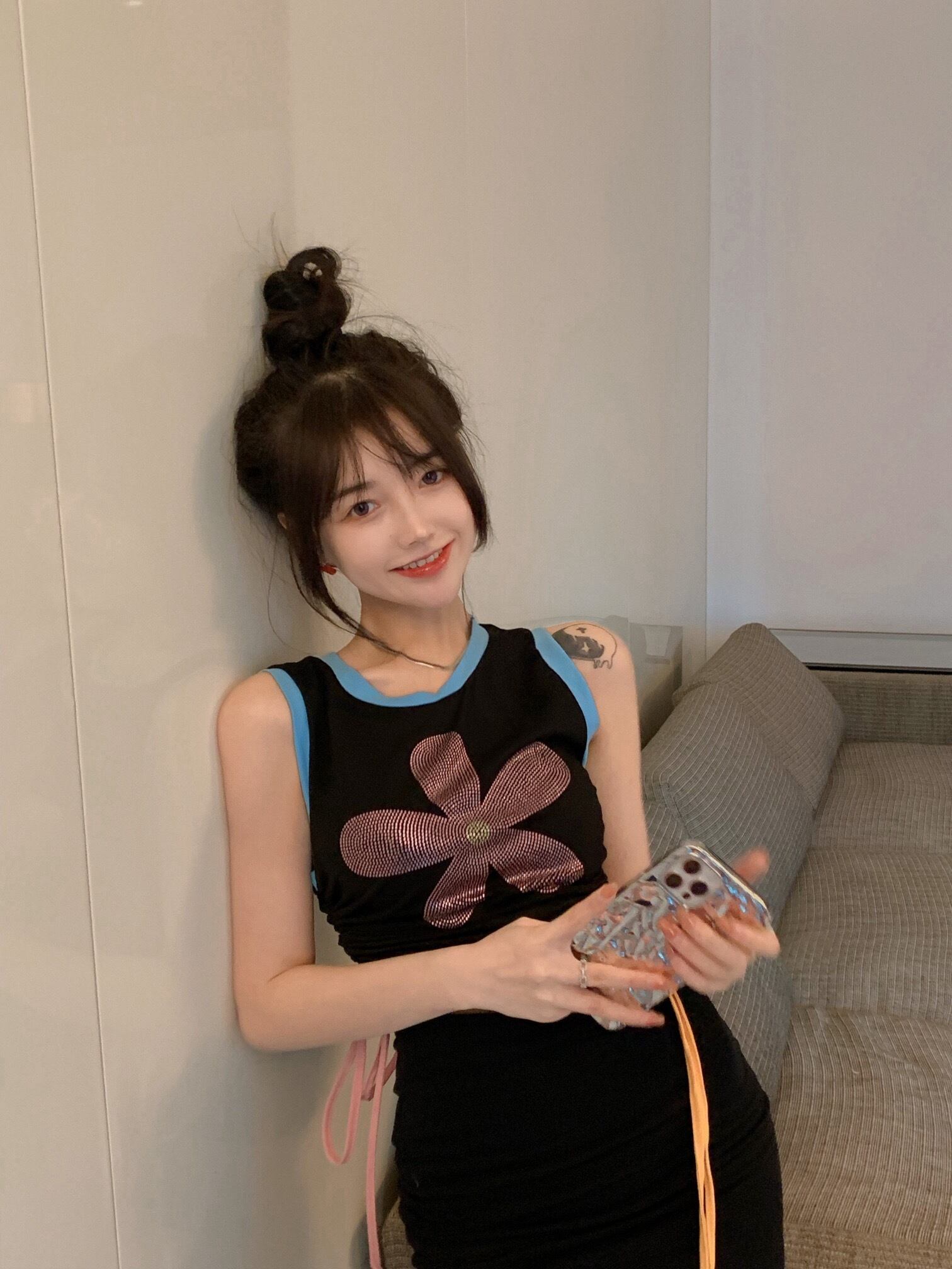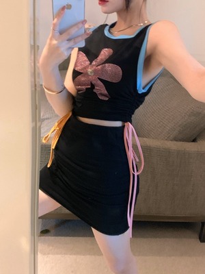 ノースリーブレディースソリッド カラースカート ソリッドカラー フラワーデザイン Xiaofeijia31252780604