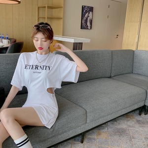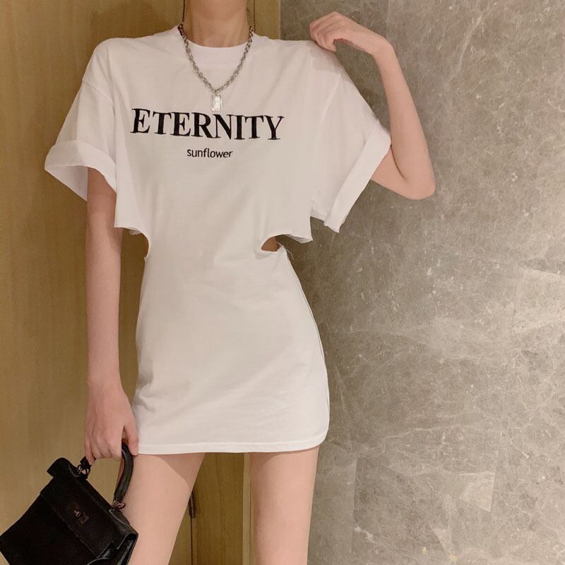ジッパーウェストショートTシャツ ドレス サマープリントスカート 夏物 Xiaofeijia70414814197