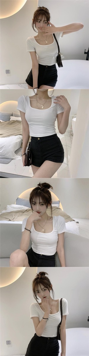 スタイルTシャツ シャツ ショートサマースリムクロップトップ トップス 夏物 スクウェア Xiaofeijia54819018657