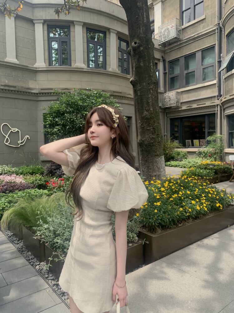 スタイルスリーブドレス ラウンドネックスカート サマー レース 夏物 Oネック Xiaofeijia87230123757