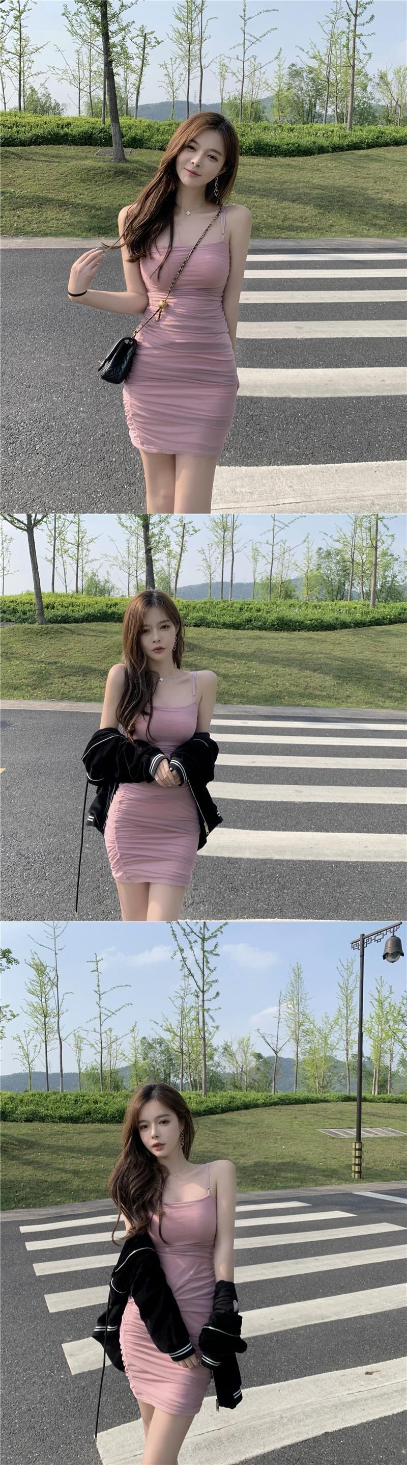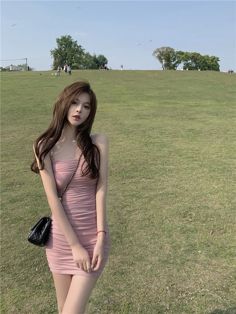 トップス スカート 薄手ドレス スリム ピンク Xiaofeijia11269529384