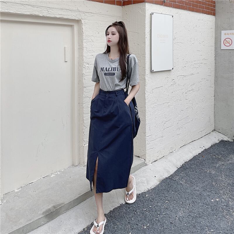 スタイルサマールーズTシャツ ハイウェストウェストスリットスカート 夏物 Xiaofeijia27847670823