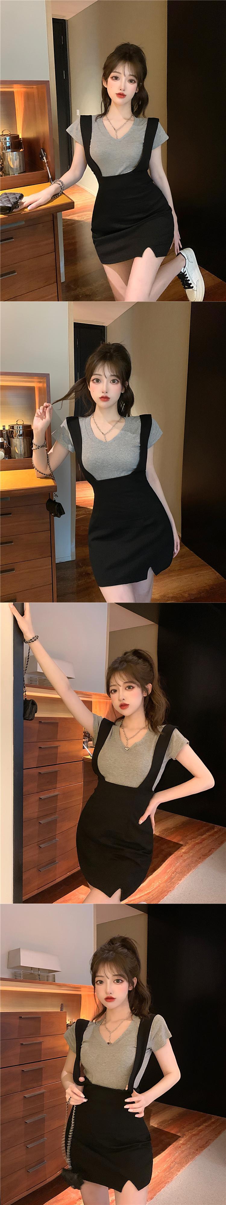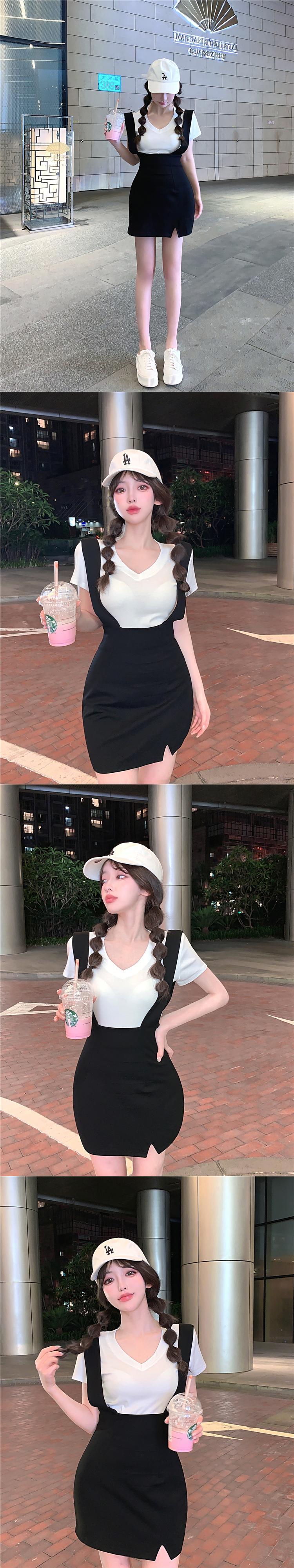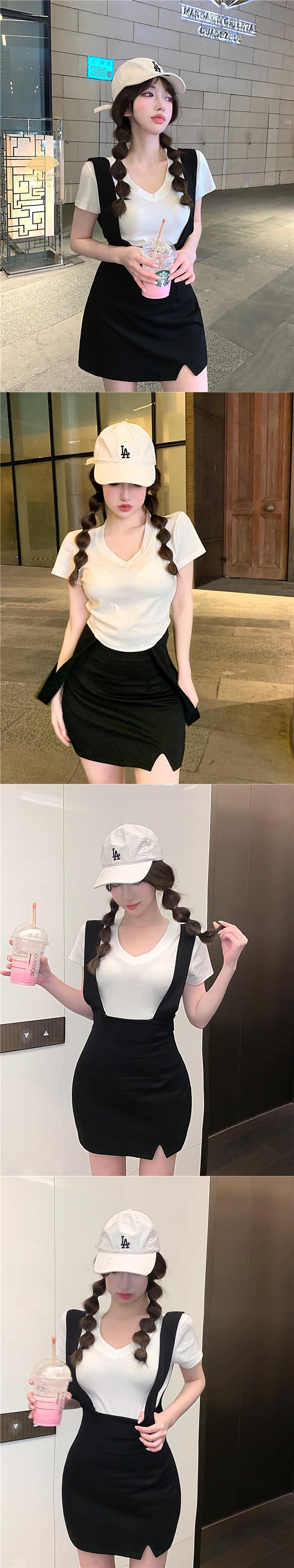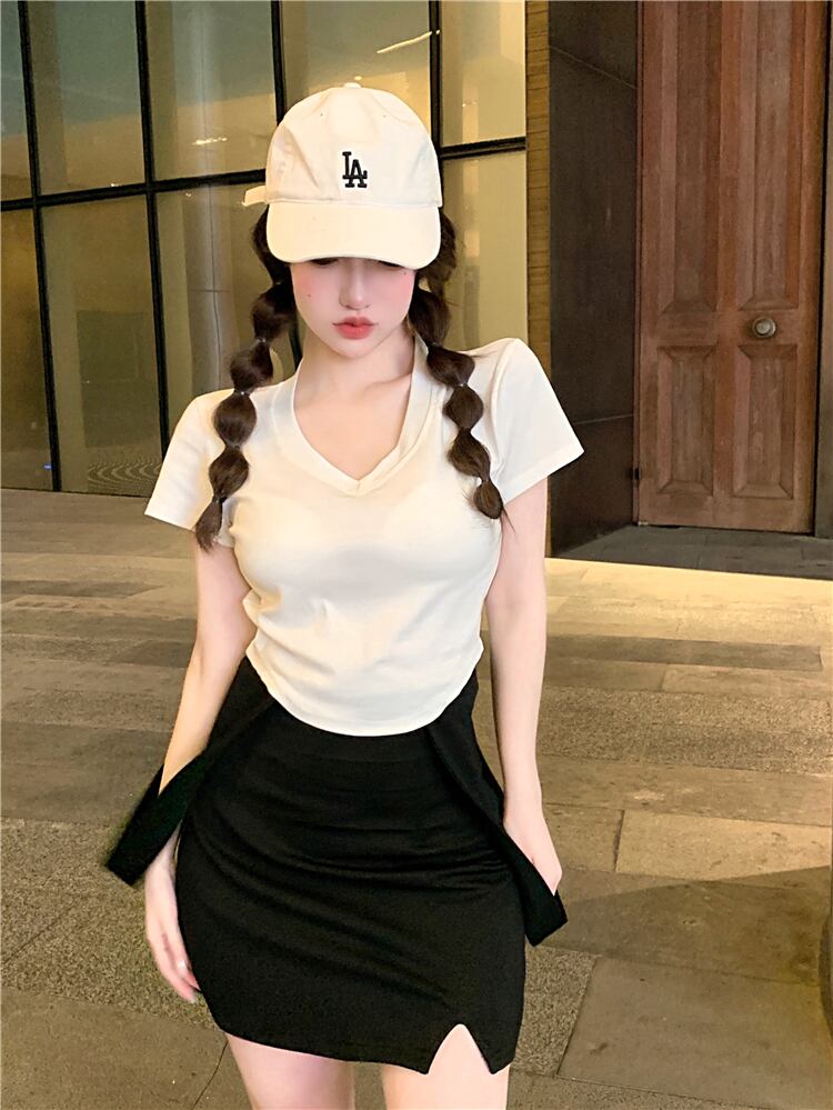 サマーVネック半袖スリーブTシャツ ウェストスカート ショート ハーフスリーブ ストリート 夏物 Xiaofeijia10642039954