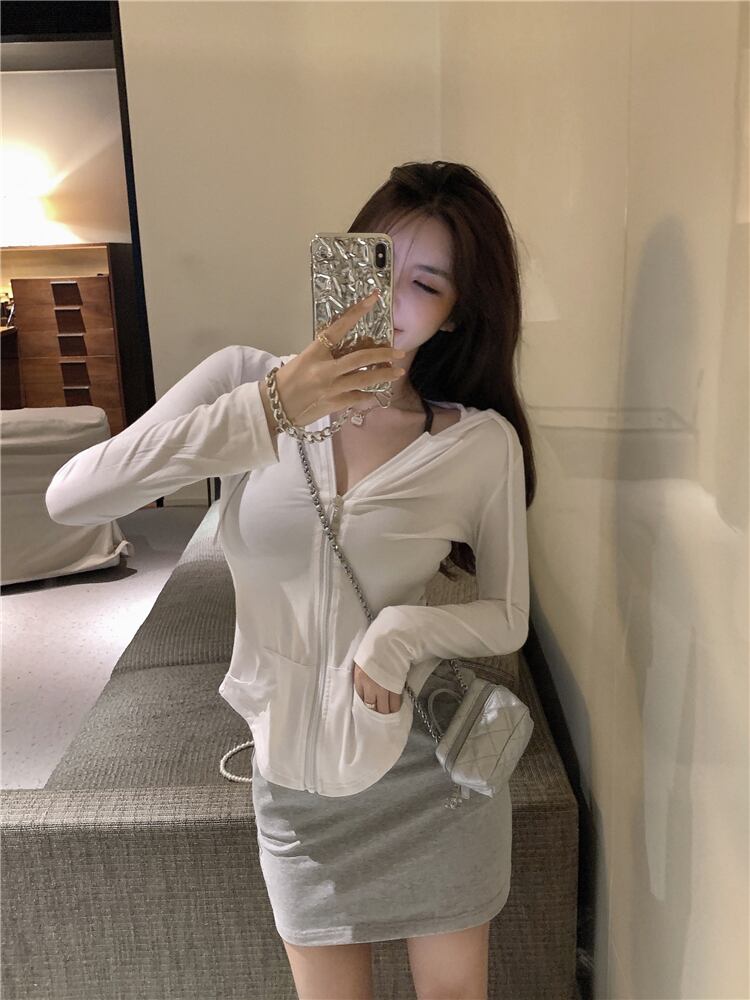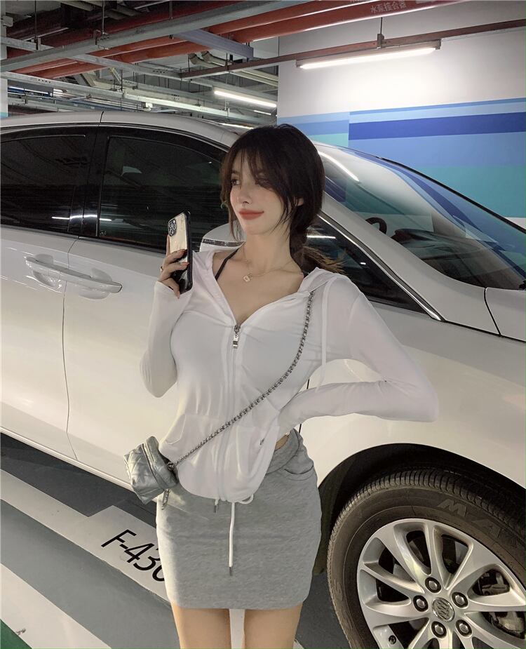 レッドTシャツ 薄手フードカーディガングレースカート サマー ストリート 夏物 Xiaofeijia73823530234